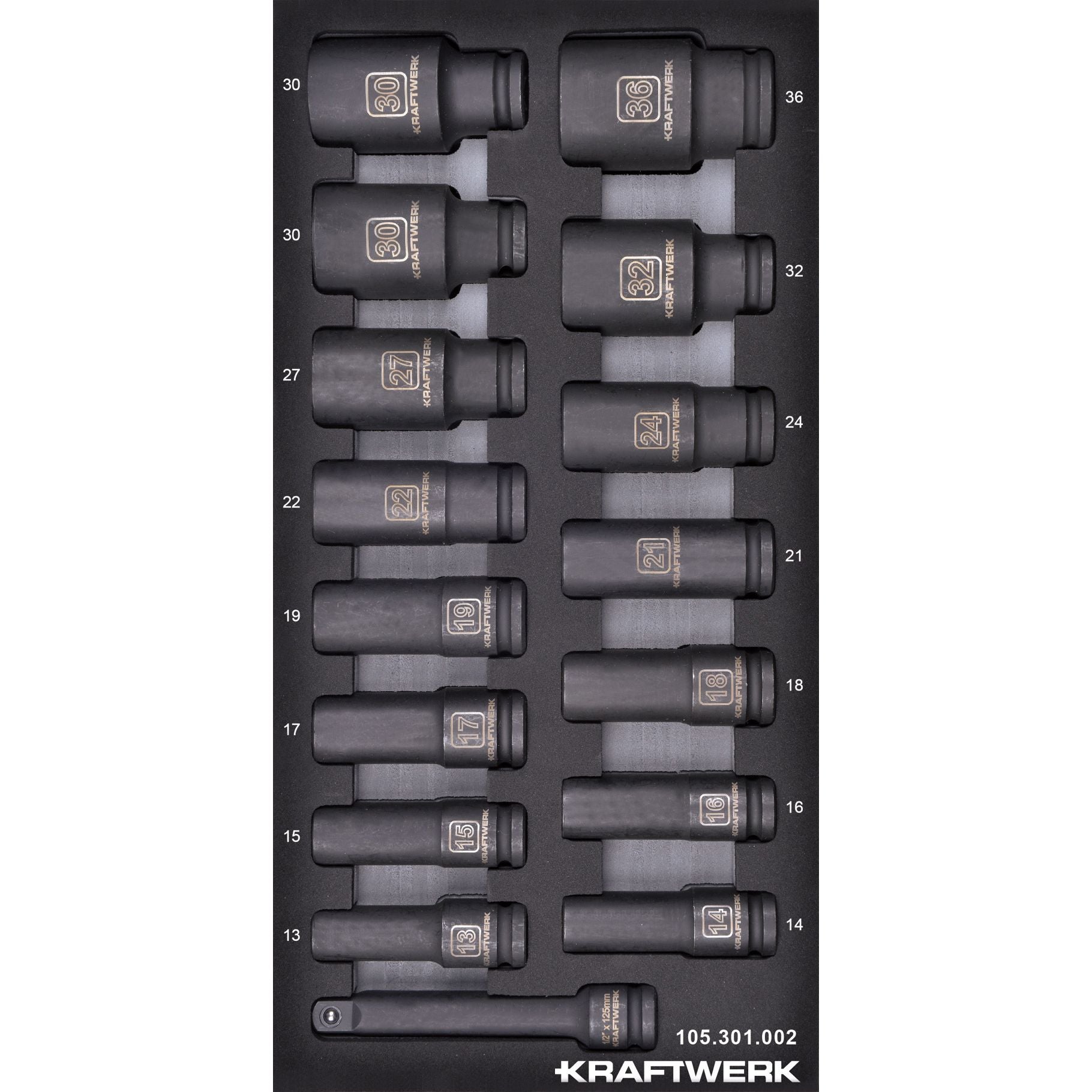 Anwendungsbereich: Ausstattung / Einrichtung BASIC LINE EVA Schlag-Steckschlüssel-Einlage 1/2, lange Ausführung, 20x40 cm, 16-tlg. 1/2 Schlag-Steckschlüsseleinsätze, lange Ausführung (6kt.): 13...