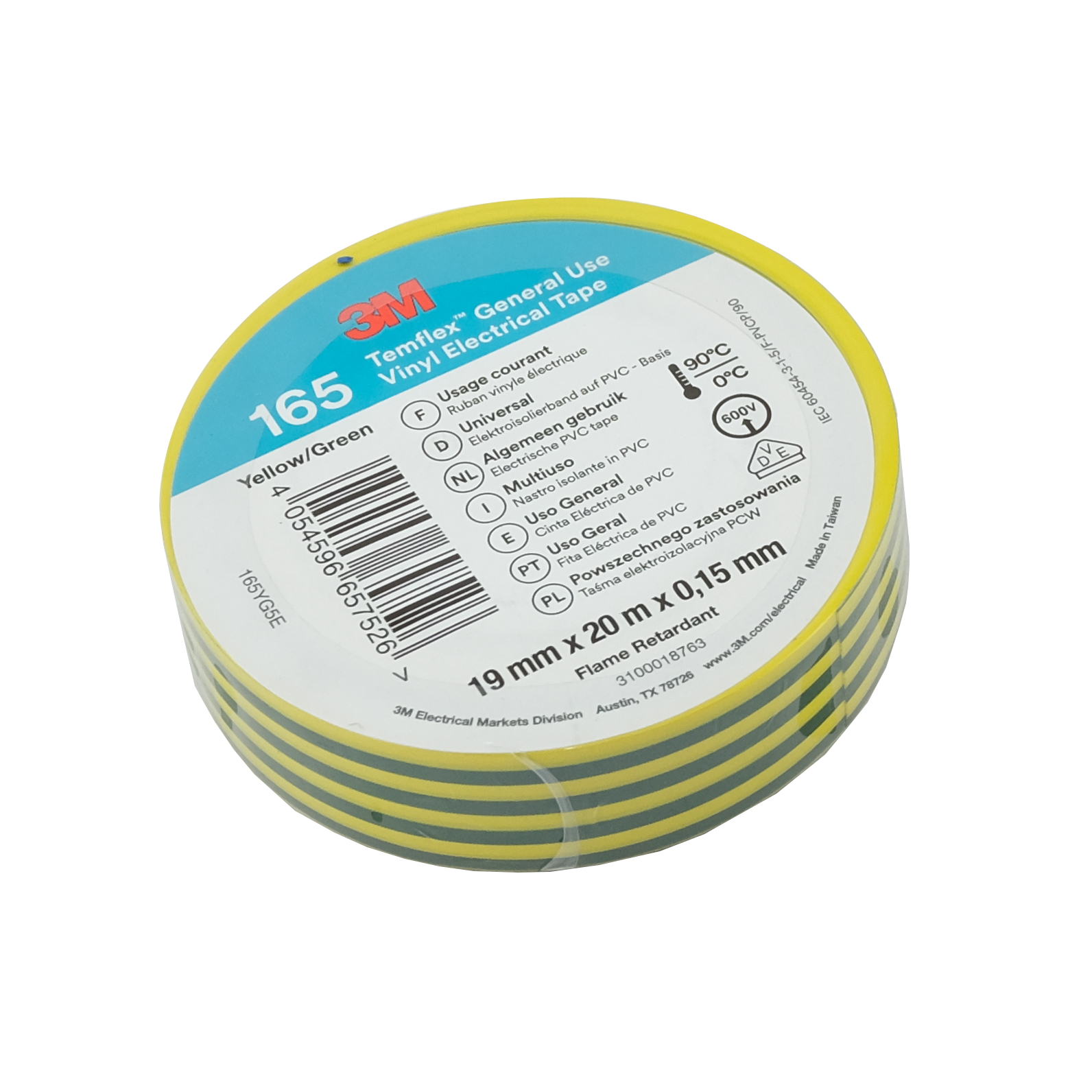 1 Rolle 3M Isolierband 20 m x 19 mm grün / gelb