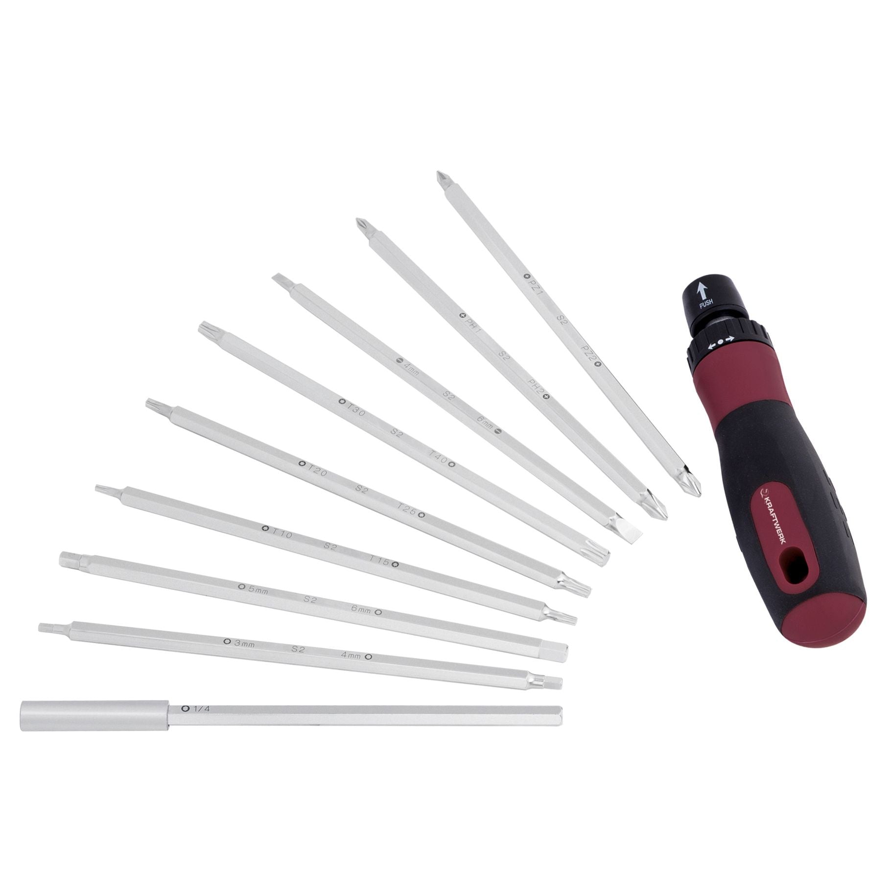 Anwendungsbereich: Handwerkzeuge ERGOKRAFT Ratschen-Kombiklingen-Schraubendrehersatz, 10-tlg. Mit 8 Doppelend-Klingen (= 16 Schraubendreher) und Klinge mit Bit-Adapter Stufenlos verstellbare Klingenlänge 5 -...