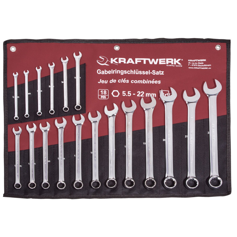 Anwendungsbereich: Handwerkzeuge Ring-Maulschlüssel-Satz, 18-tlg. 5.5-6-7-8-9-1-11-12-13-14-15-16-17-18-19-20-21-22 mm Hochglanz verchromt In Premium-Werkzeugtasche Chrom-Vanadium