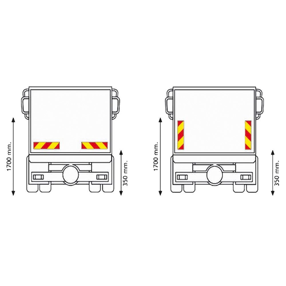schraffiert, orange/rot, Alu, ECE 70.01 (stärker reflektierend als Vorgänger mit ECE 70.00)Abmessungen565x140x1.2mm