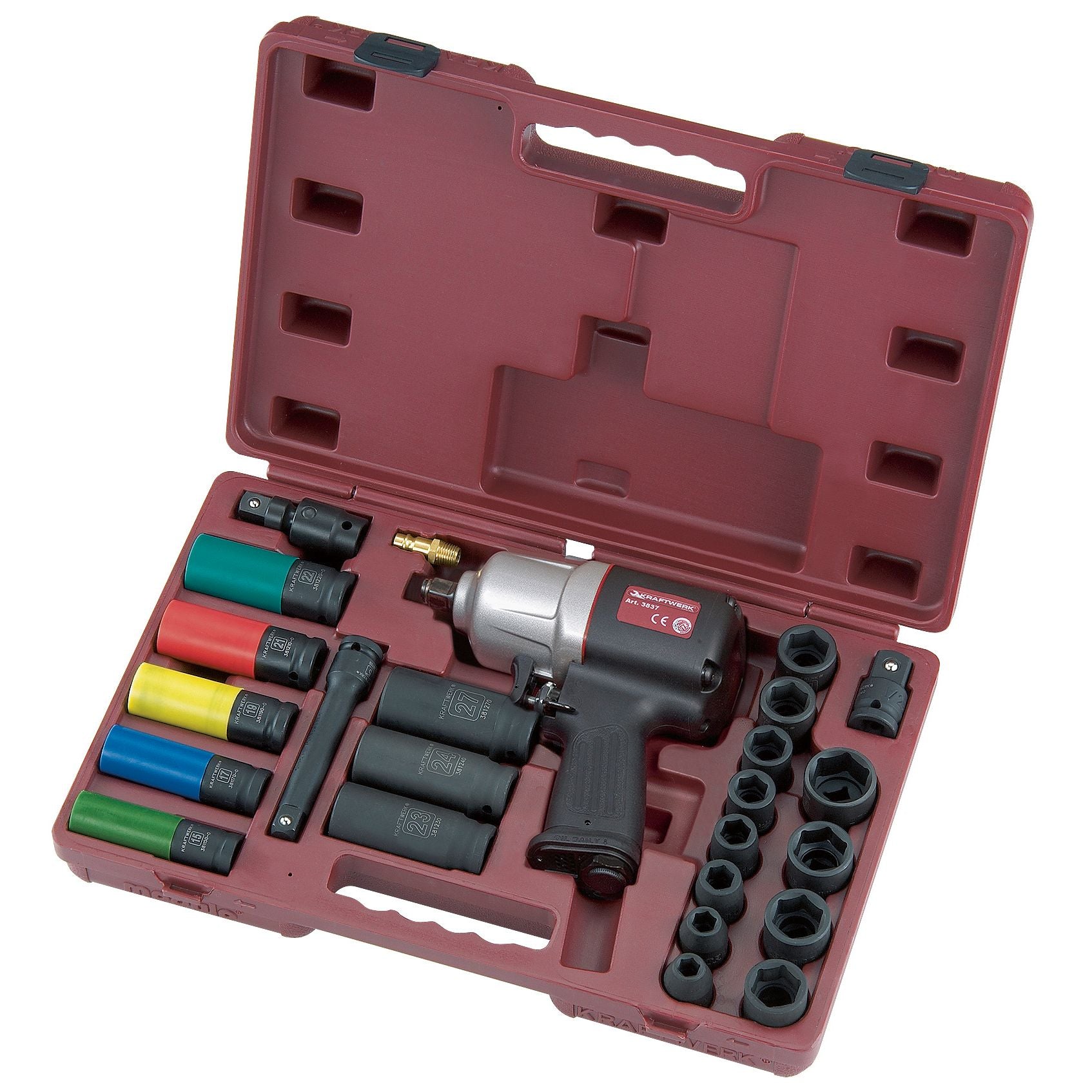 Anwendungsbereich: Pneumatisch Druckluftschlagschrauber-Satz 1/2, 24-tlg. 1/2 Schlag-Steckschlüssel Sehr robust Chrom-Molybdän-Stahl 1/2 Industrieschlagschrauber Losbrechmoment: max. 1.486 Nm Rückdrehmoment: max. 810 Nm...