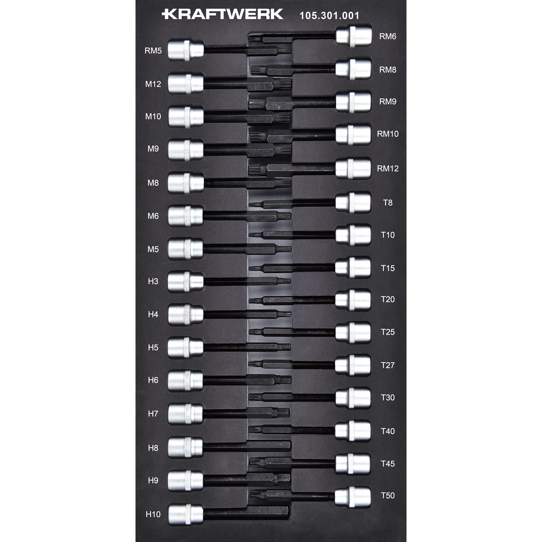 Anwendungsbereich: Ausstattung / Einrichtung BASIC LINE EVA Schraubendreher-Steckschlüssel-Einlage 3/8”, lange Ausführung, 20x40 cm, 30-tlg. 3/8” Innensechskant Schraubendreher-Steckschlüsseleinsätze, 90 mm: 3...