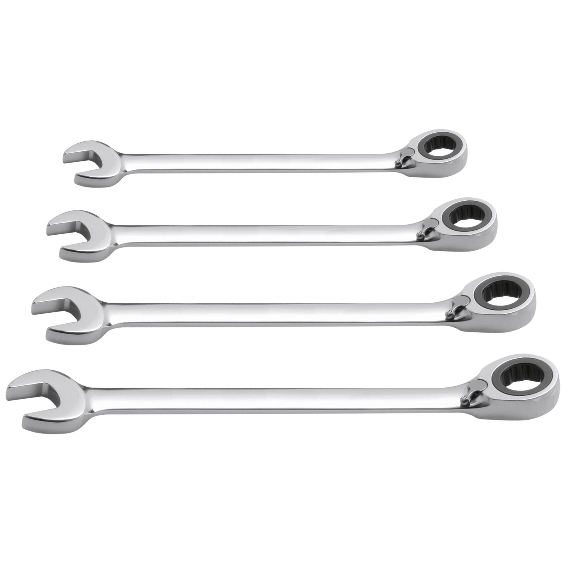 Anwendungsbereich: Handwerkzeuge Ratschen-Ring-Maulschlüssel-Satz, 4-tlg. Umschaltbar Verchromt und hochglanzpoliert 10- 13 - 17 -19 mm
