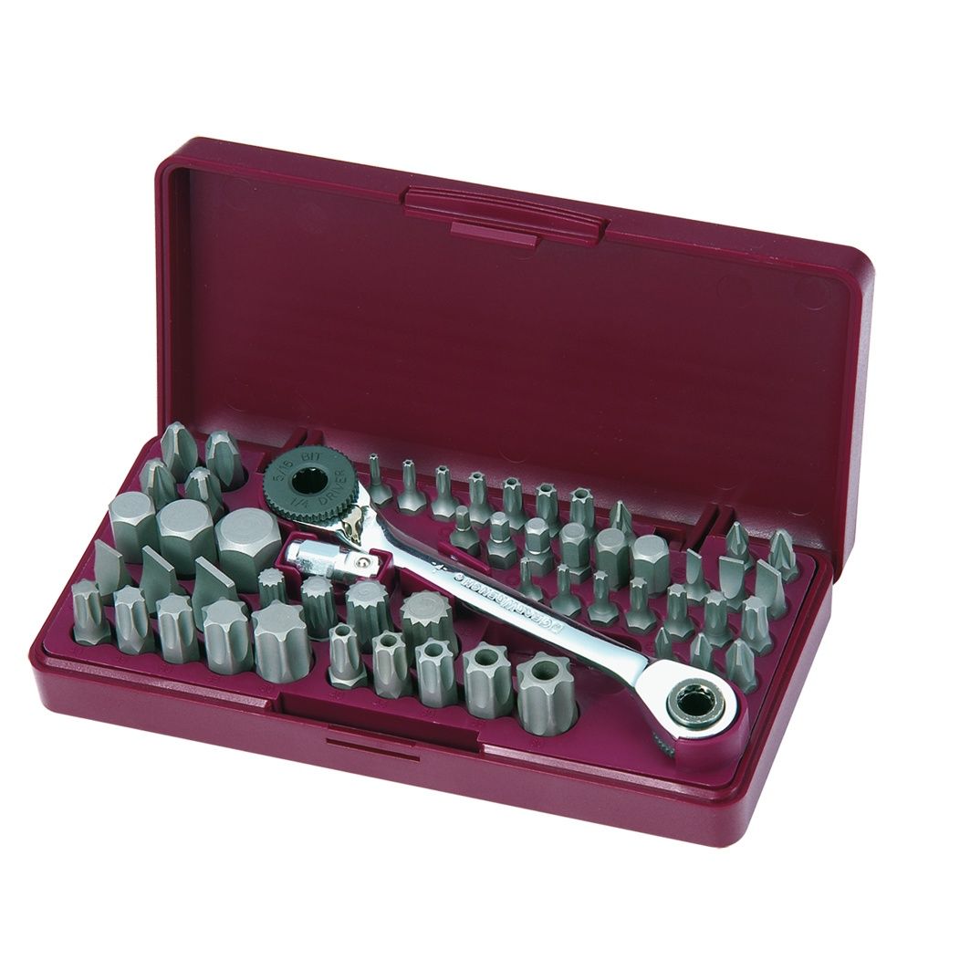 Universell bestückt mit 53 Bits 1/4, 5/16 und Stecknuss-Adapter 1/4