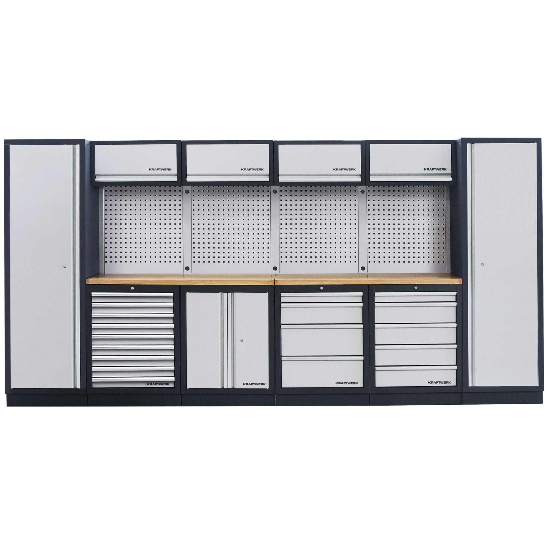 Anwendungsbereich: Ausstattung / Einrichtung KRAFTWERK MOBILIO 6-Element-Schrankw. mit Vierkantlochwand - 6-Element-Werkstatt-Schrankwand - 4 Oberschränke mit Gasfederung - 2 Hochschränke mit...