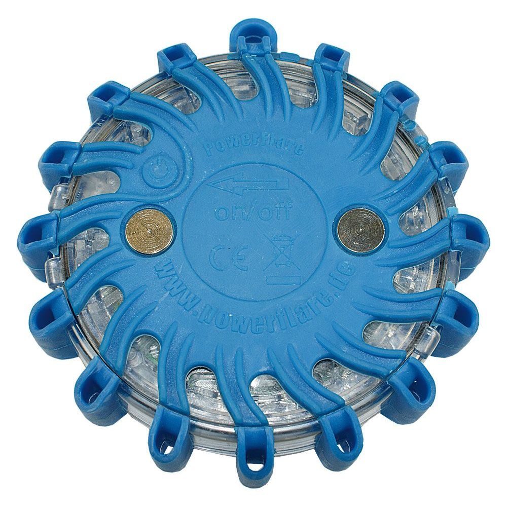 Powerflare Akku Warnleuchte mit stark haftenden Magneten, wasserdicht; inkl. Ladegerät 230V & 12/24V (in 3 Stunden)aufladbar; 9 verschiedene Blinkfolgen: