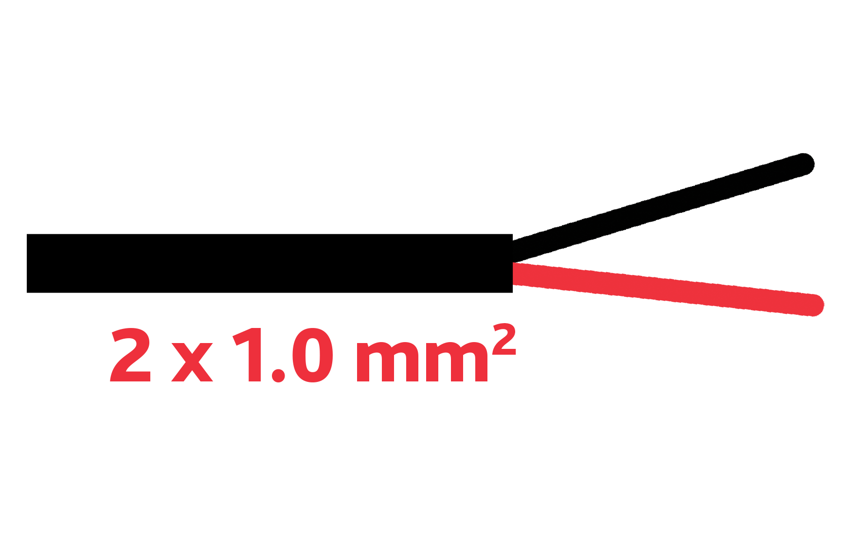 Ummantelung: schwarz Adernfarben: schwarz und rotKabelquerschnitt2 x 1.0 mm2Länge200 m auf Bobine Ø 300 mmAussen-ø5.0 mmTypFLRYY