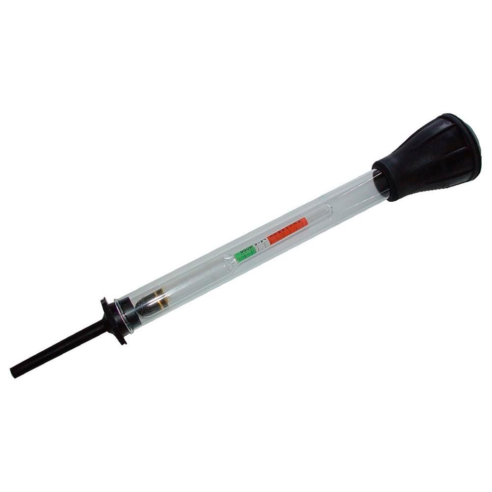 Säureheber zum Prüfen der Batteriesäure-Dichte von PKW-, LKW- und Motorradbatterien. Glaszylinder mit Ansaugball und Pipette. Messung (bei kalter Batterie): Roter...