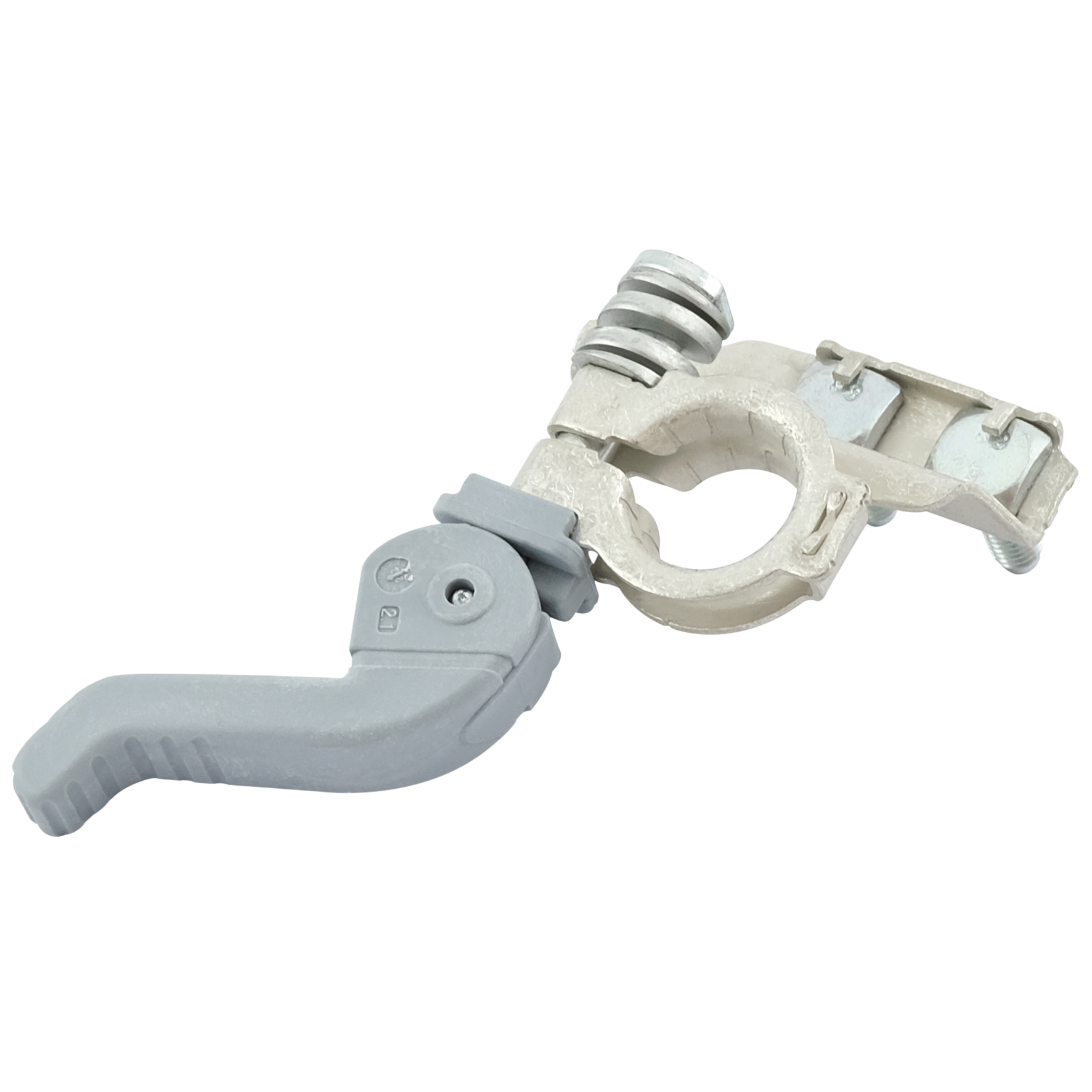 Batterieklemme Negativ mit Anschlussterminal. mit horizontalem Schnellverschluss Quick Lock Anschlüsse: - 2 x M6 x 14 mm - 1 x...