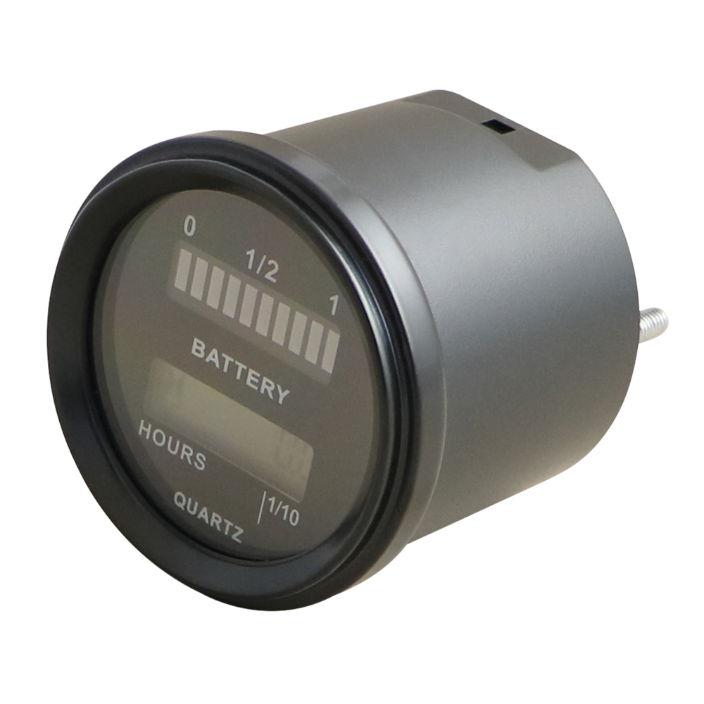 Betriebsstundenzähler und Batterieanzeige in einem Bauteil.