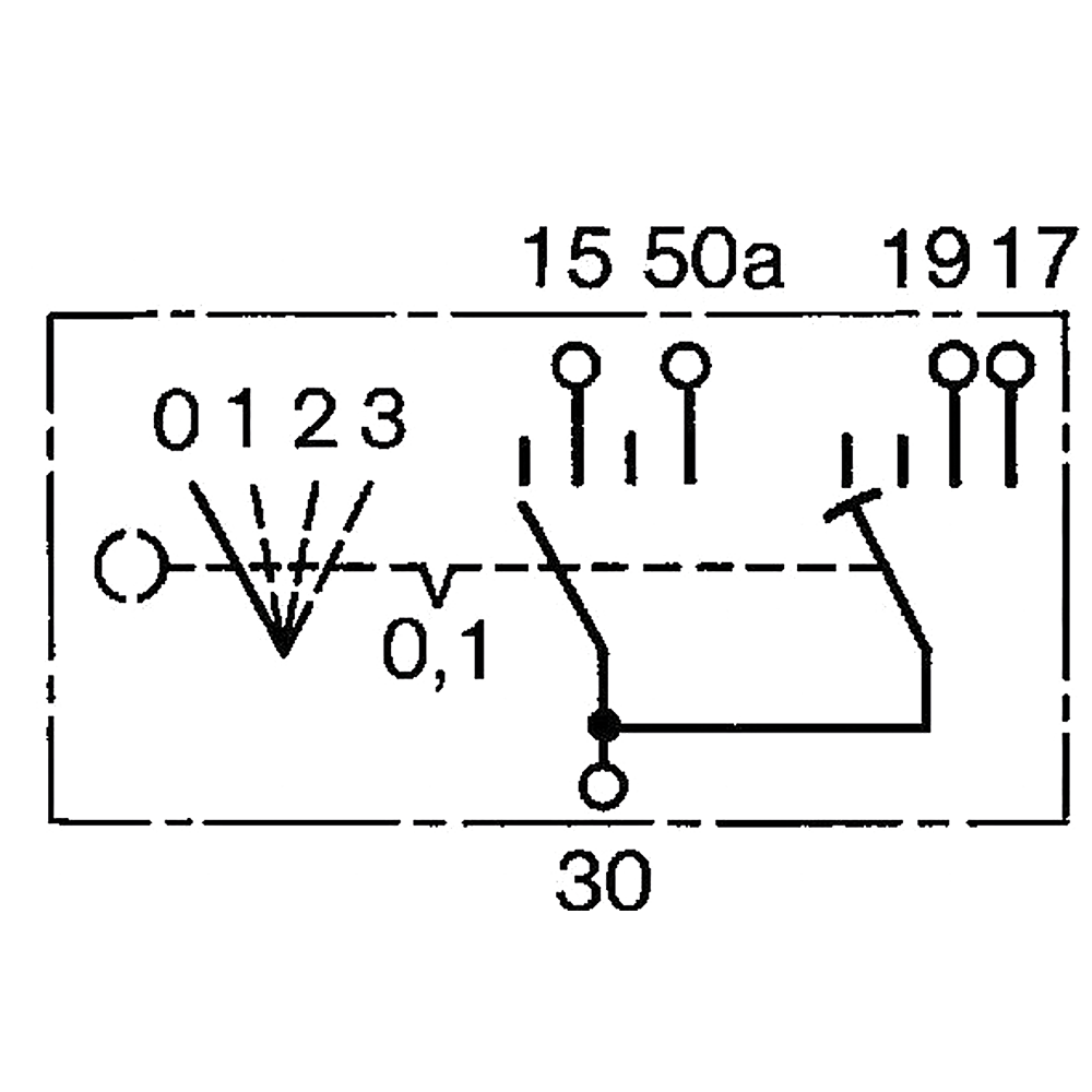 Schlüsselnummer E30 Schalterform: Drehschalter Funktion mechanisch: rastend Funktion elektrisch: Mehrstufig Spannung: 12 bis 24 Volt Einbauloch: rund Durchmesser: 26 mm...
