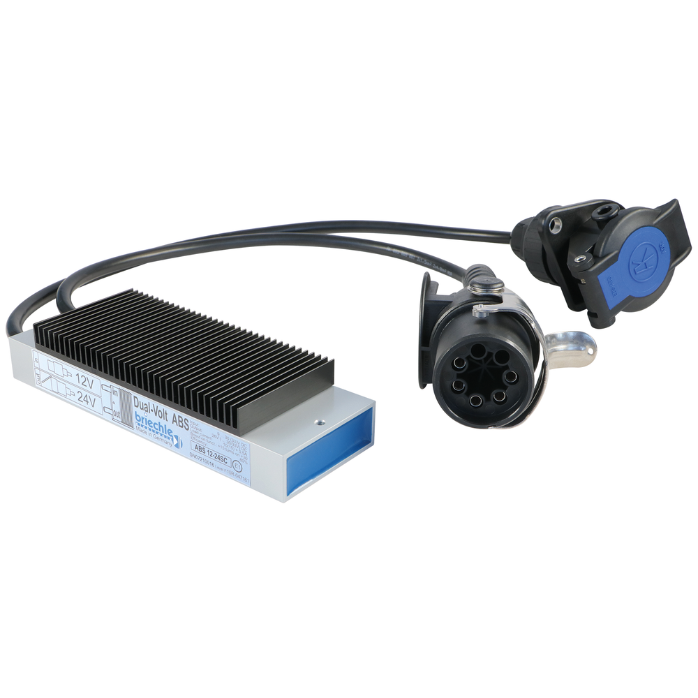 Spezialwandler zur Versorgung eines 24 V ABS/EBS-Systems aus 12 oder 24 V. Der Wandler ist am Eingang mit einem 12 V ABS/EBS-Stecker und am Ausgang mit einer 24 V ABS/EBS-Steckdose ausgerüstet. Nur für die Montage am Zugfahrzeug. Die Pins 6 und 7 ("CAN-Bus") sind unbestückt.