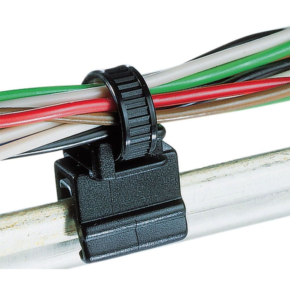 für Wandstärken von 1.0-3.0mm, Kabelbinderschlaufe oben an der Klemme, schwarz, Temperatur: -40°C bis +105°C, Polyamid 6.6 hitzestabilisiert (PA66HS), schwer entflammbar...