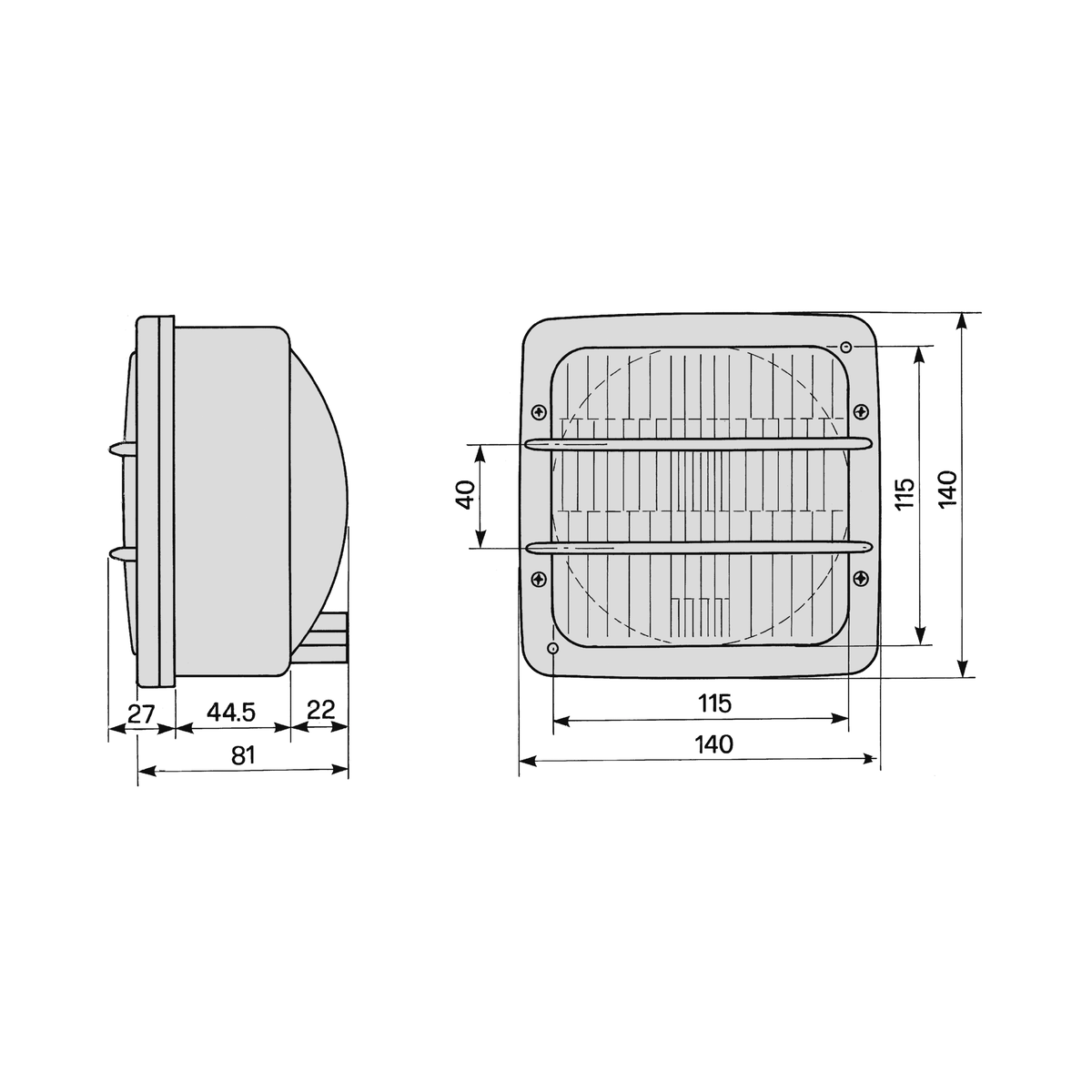 symmetrisch, ohne Standlicht, Schraubmontage 0° gerade / DGM 7886 PMXLAE-NummerDGM-7886Spannung12/24 VAbmessungen140 x 140mm