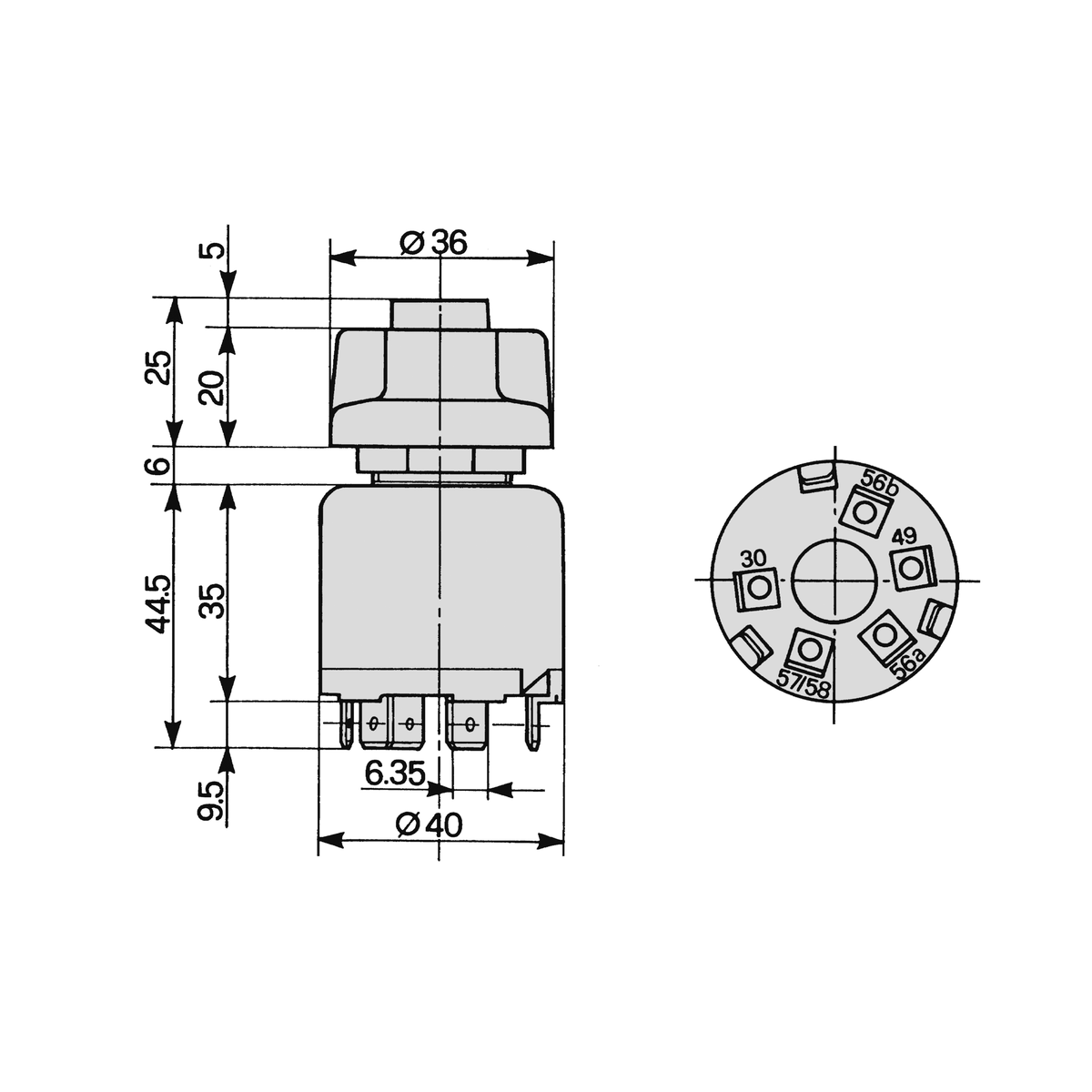 Schalterform: Drehschalter Funktion mechanisch: rastend Funktion elektrisch: Mehrstufig Einbauloch: rund Durchmesser: 22 mm Beleuchtung: Nein Wasserdicht: Nein Zusatzinformation: - 0-1-2-3...