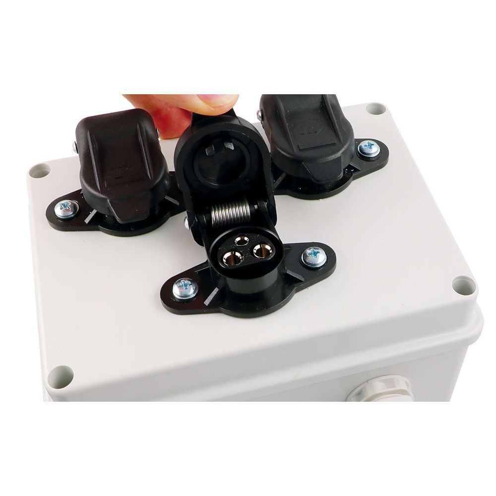 3 x 3pol. Dosen 1 x 3pol. Stecker 3.5m Kabel (2.5mm²) Stecker mit PG-VerschraubungAnzahl Pole3Abmessungen150x110x70mm, 3.5m KabelDIN/ISODIN9680Belastbarkeit25A