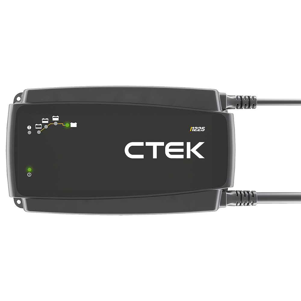 Das I1225 ist ein vollautomatisches 7-Stufen-Ladegerät mit einem Ladestrom von 25 A für 12 V-Batterien zwischen 40 Ah und 500 Ah. Es besitzt Schutzart IP44 für den Einsatz im Freien und besitzt eine automatische Batteriediagnose, die anzeigt, ob die Batterie Ladung aufnehmen und halten kann, eine einzigartige Erhaltungsladefunktion sowie einen Temperatursensor für einen unter allen Wetterbedingungen optimierten Ladevorgang. Lieferumfang des I1225 ist ein 2 m-Kabel mit M10 Ringkabelschuhen enthalten, um die Installation zu erleichtern.