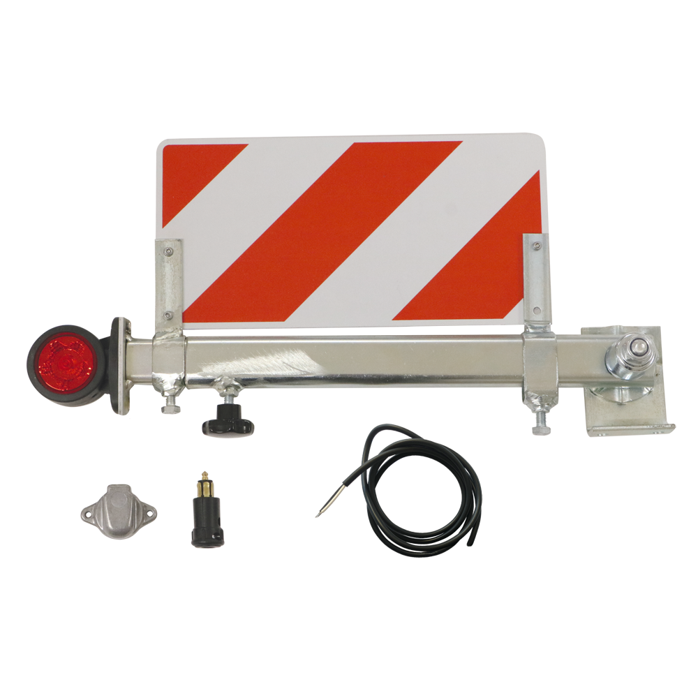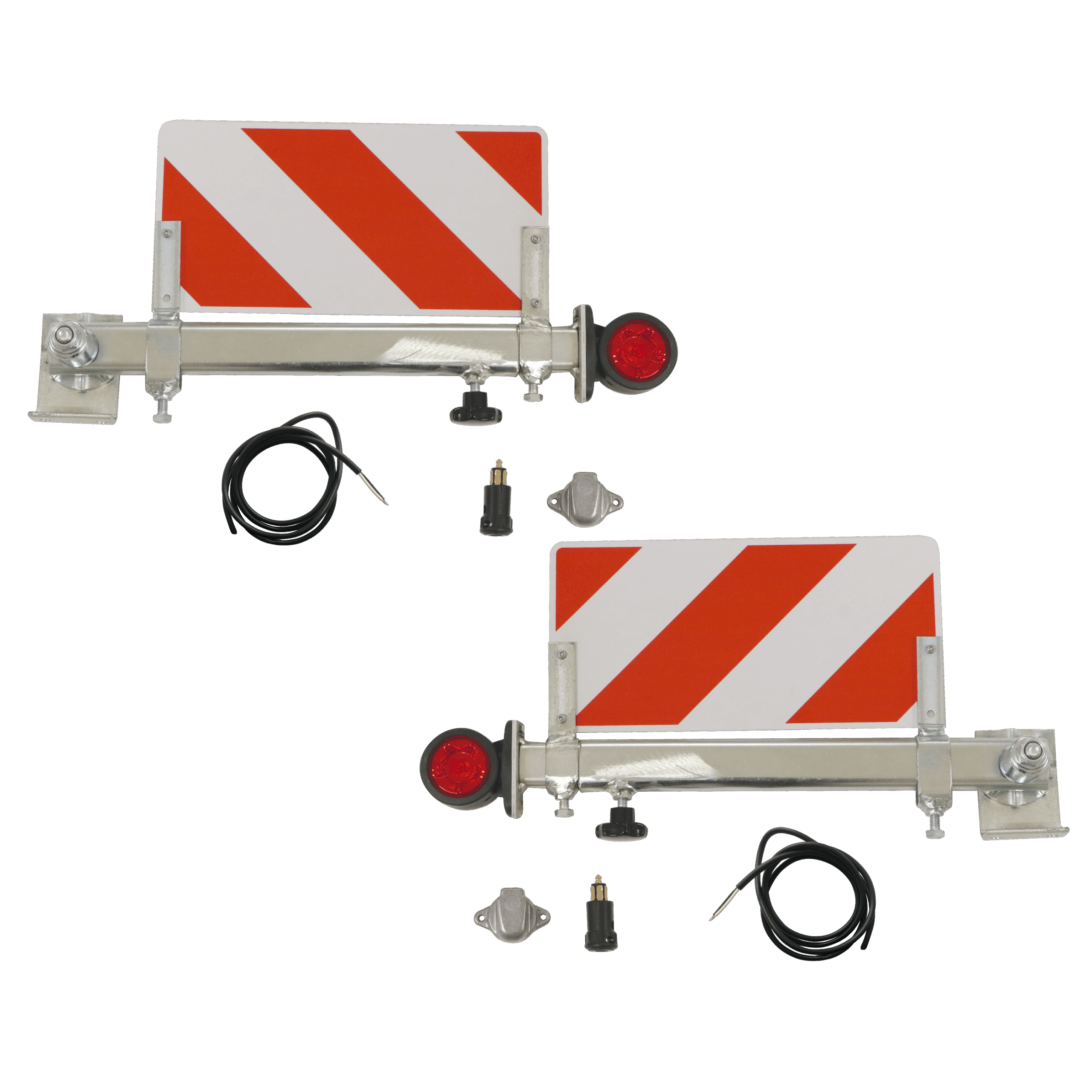 Überbreitenmarkierung 2 Markierungstafeln rot/weiss reflektierend kl. 1 2 Halter mit Auszugsicherung, vertikale Schwenkung 2 Positionslampen, 1.5 m Kabel und SteckdosenAbmessungenHalter...