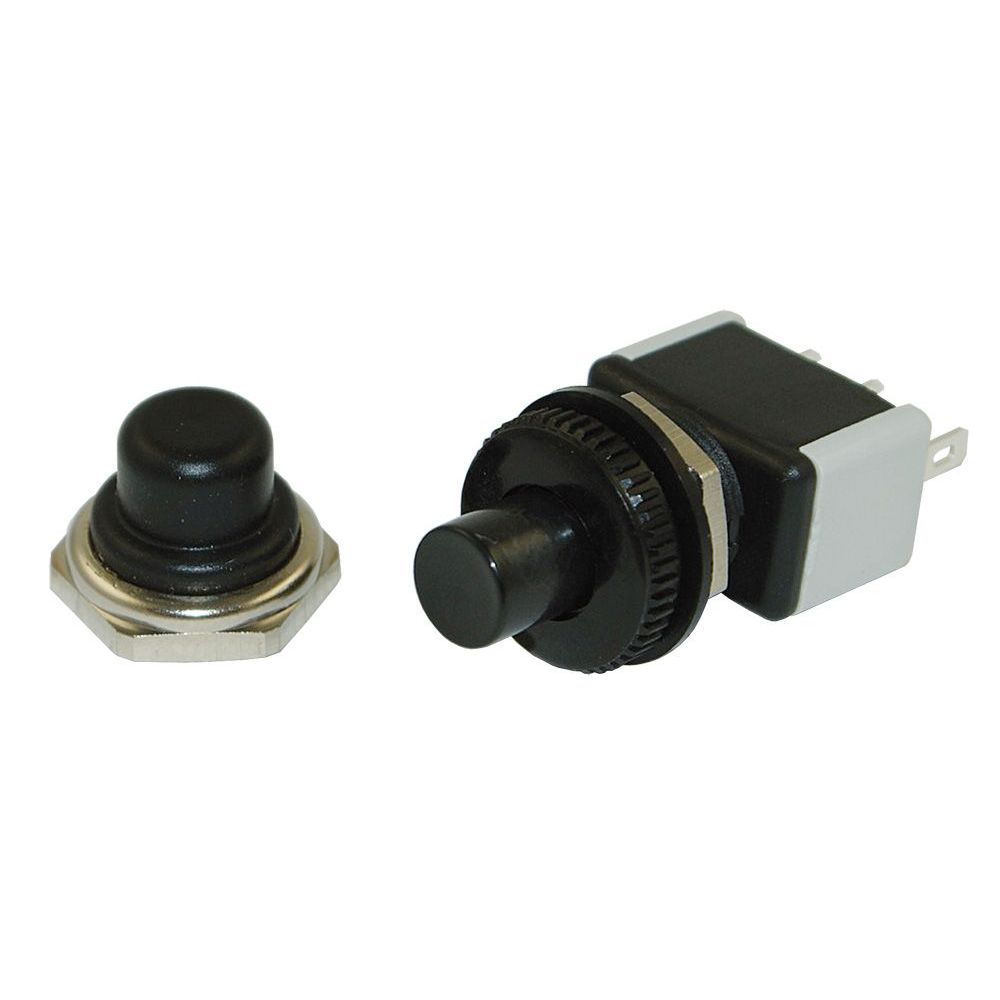 Schalterform: Druckschalter Funktion mechanisch: rastend Funktion elektrisch: Umschalter Spannung: 12 bis 24 Volt Belastbarkeit: 6 Ampère Einbauloch: rund Länge: 19...