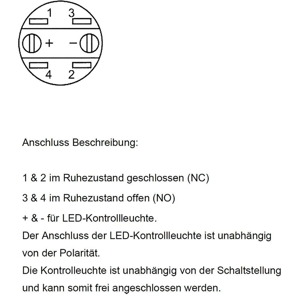 SchalterformDruckschalterFunktion mechanischtastendFunktion elektrischSchliesserSpannung24 VoltBelastbarkeit5 AmpèreEinbaulochrundLänge32.7 mmBreite / Tiefe22 mmDurchmesser19 mmBeleuchtungJaWasserdichtJaIP-Grad65Zusatzinformation- Vandalengeschützt IK09