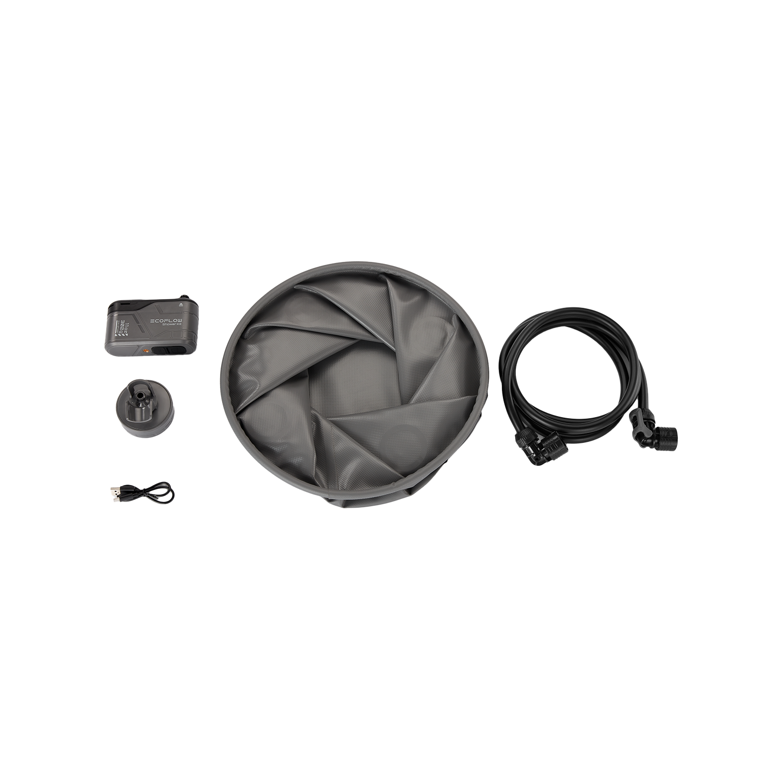 Dank seines leichten, tragbaren Designs lässt sich das Shower Kit mühelos transportieren und platzsparend verstauen. Die Anwendung ist unkompliziert: Pumpeneinheit aufladen (z.B. über eine Power-Station via USB), einsetzen – und die mobile Dusche ist bereit für den Einsatz.