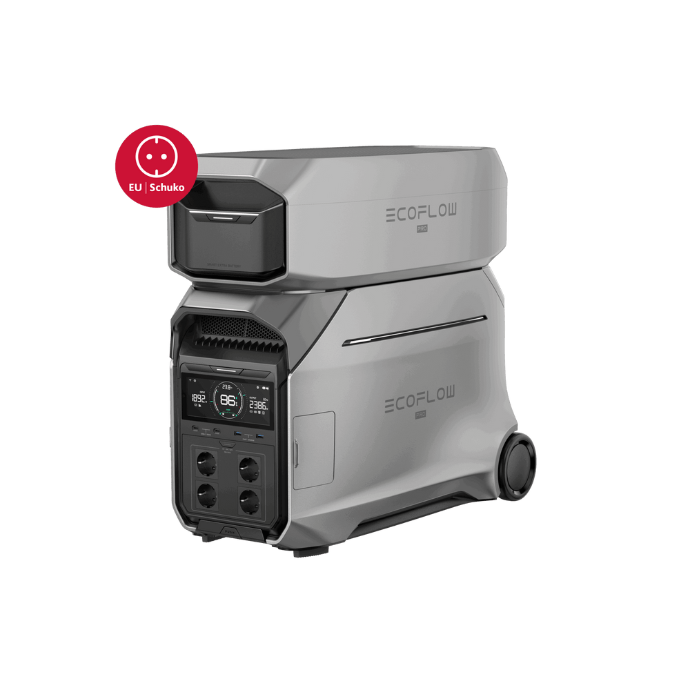 Das Kraftwerk und absolute Ultimum der aktuell auf dem Markt erhältlichen, tragbaren Energiespeicher und Stromgeneratoren, die Delta Pro 3 mit 4’096 Wh Kapazität und AC Ausgangsleistung von 4’000 W.