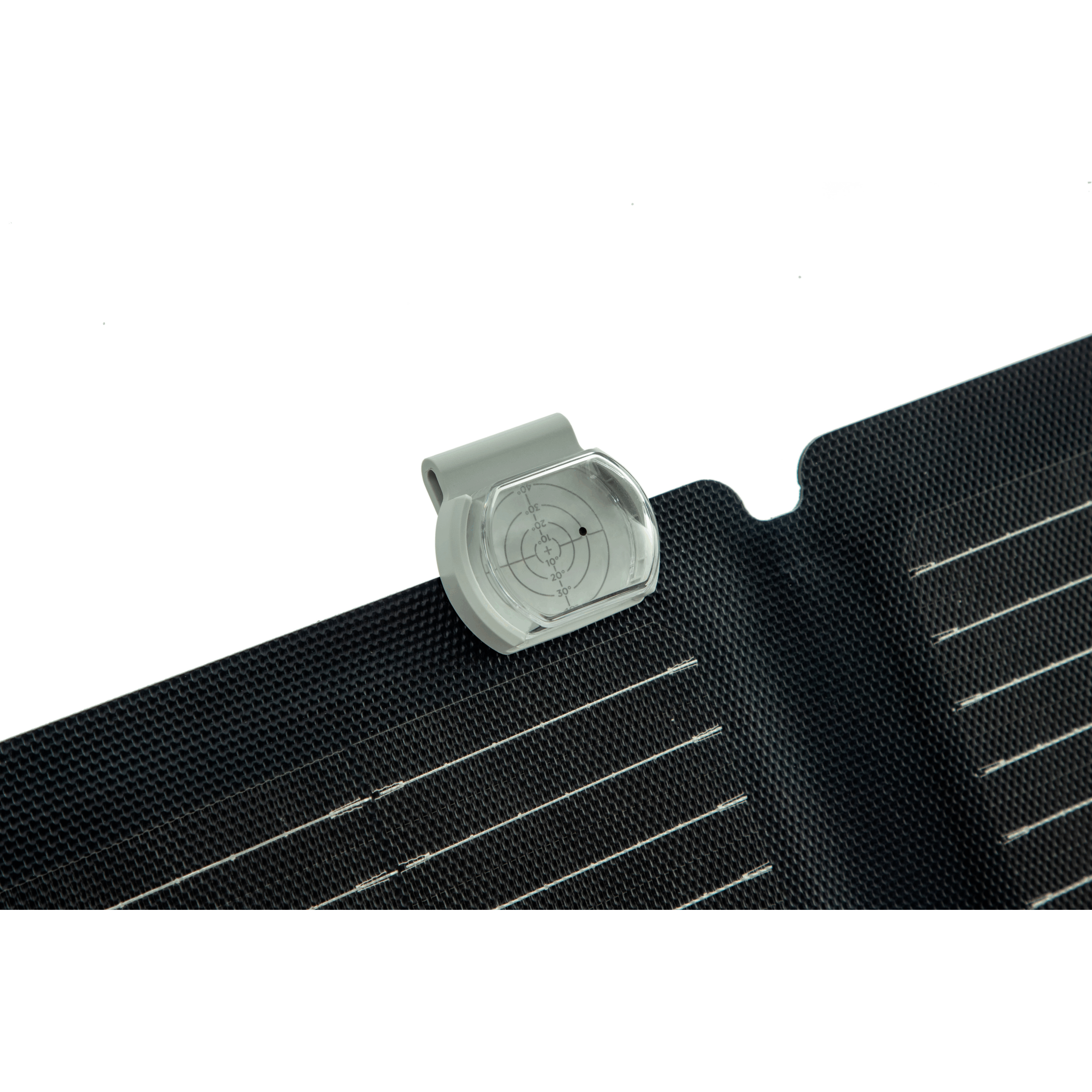 Befestigen Sie den Clip an der Kante Ihres Solarmoduls. Richten Sie dann Ihr Solarmodul anhand des Schattens auf die Sonnenstrahlen aus. Sobald es ausgerichtet ist, können Sie loslegen.