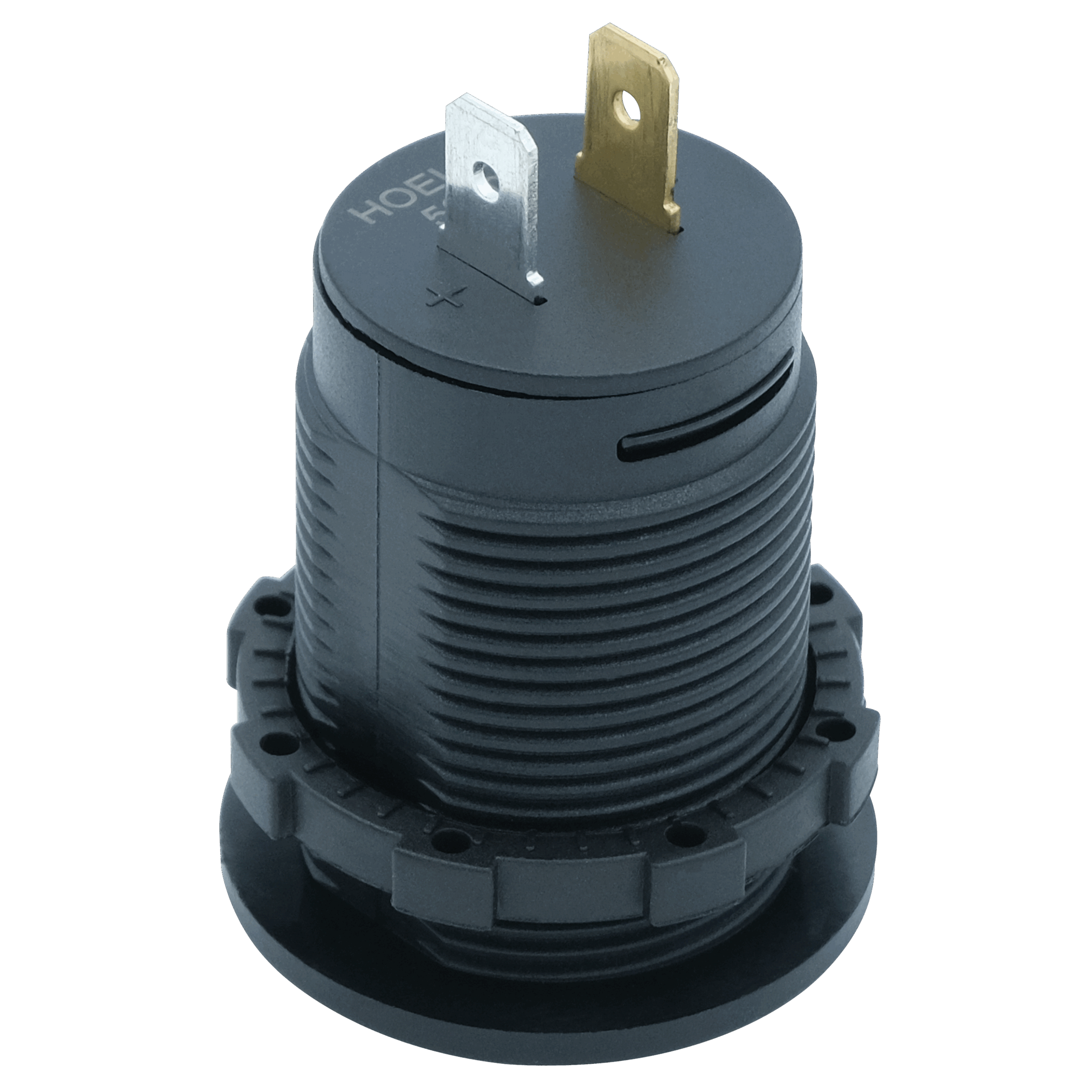 Die Montage ist einfach: ein runder Einbau mit Standardmass, stabile Befestigung und zuverlässige 6.3 mm Flachsteckanschlüsse auf der Rückseite. Robuste Technik für anspruchsvolle Anwendungen.