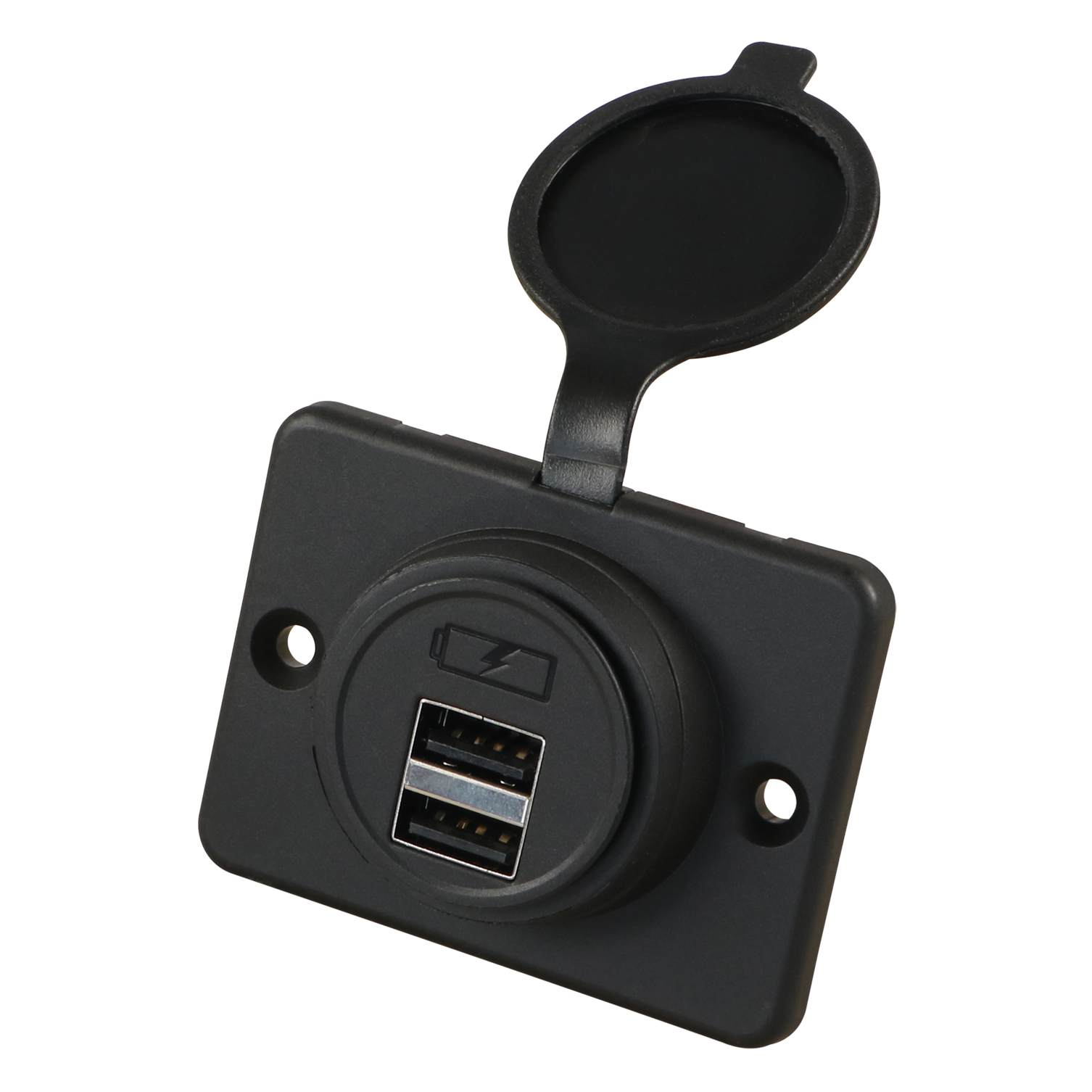 Flache USB Ladedose, benötigt nur 1 Loch für die Kabelführung. - 2 x USB-A - Gesamtleistung 21 W - Höhe...