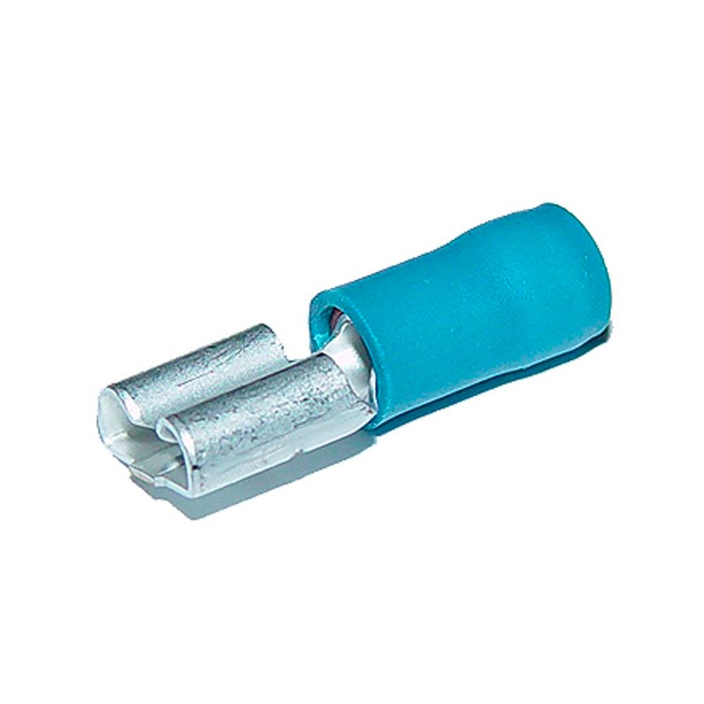 Verstärkte Flachsteckhülse mit PVC-Isolation (ESPA-Ausführung) Steckbreite: 6.3mm Steckdicke: 0.8mm Kunststoffhülse: PVC (Vinyl) Farbe: blau Materialdicke: 0.45mm Werkstoff: Messing (CuZn) Oberfläche:...
