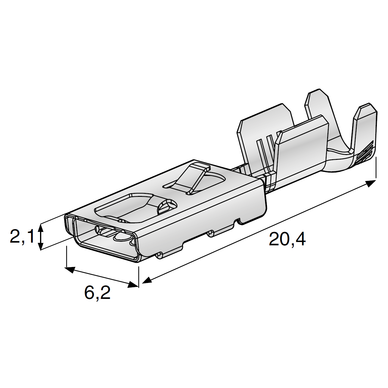 Flachsteckhülsen F480E, passend zu MTA Modul 0301695 Material: CuZn-SnKabelquerschnitt1.5÷2.5mm2Breite6.2mmAbmessungen20.4 x 6.2 x 2.1mm, 0.3mm dick