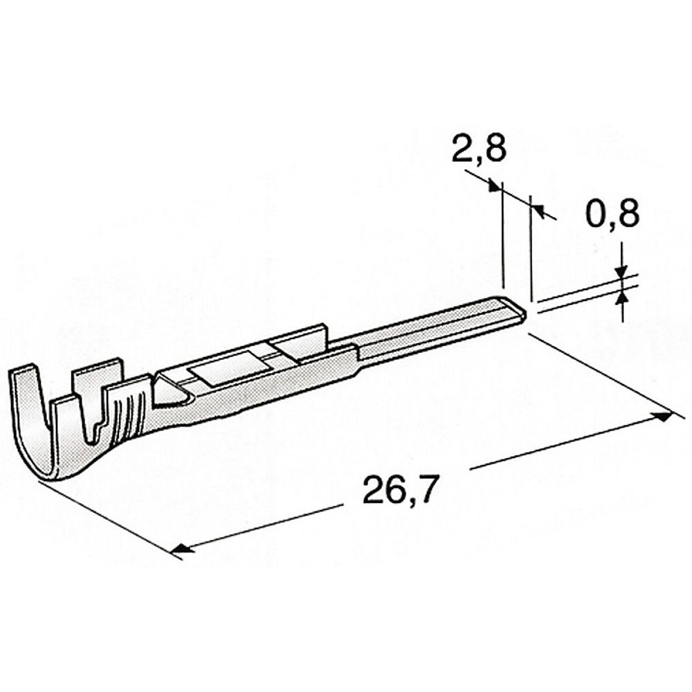 Flachsteckkontakt/-zunge (männlich, blank) 2.8x0.8mm zu abgedichteten (Einspritz-)Steckergehäusen AMP Junior Timer (JT) zB 4410660 (2polig) von MTA für 2.8mm Flachsteckhülsen Material:...
