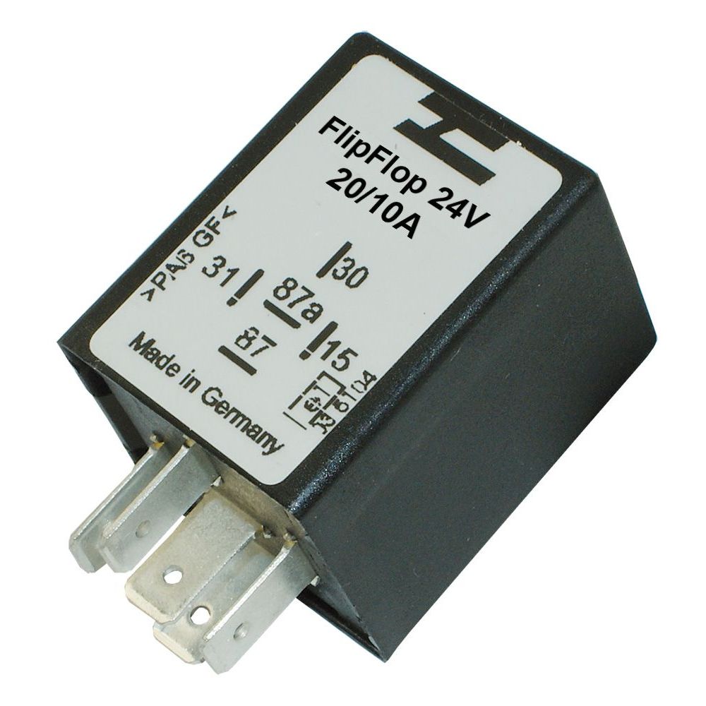 RelaisformSchrittrelaisSchaltfunktionWechsler / ÖffnerSpannung24 VLeistung Ruhekontakt10 AmpèreLeistung Arbeitskontakt20 AmpèreHalterJaParallelwiderstandNeinLöschdiodeNeinSicherungNeinAnschluss 30 seitlichNeinDauerstromJaWasserdichtNeinZusatzinformationElektronisch, geht ohne Spannung auf Klemme 30 (Last- und interner Steuerstrom) in Grundstellung zurück.