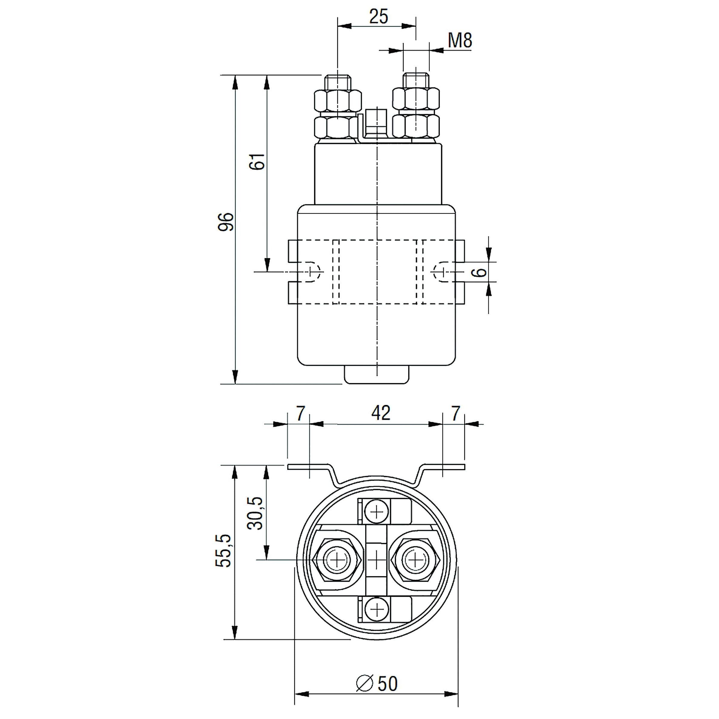 Relaisform: Hochleistungsrelais Schaltfunktion: Schliesser Spannung: 36 V Leistung Arbeitskontakt: 150 Ampère Halter: Ja Parallelwiderstand: Nein Löschdiode: Nein Sicherung: Nein Anschluss...