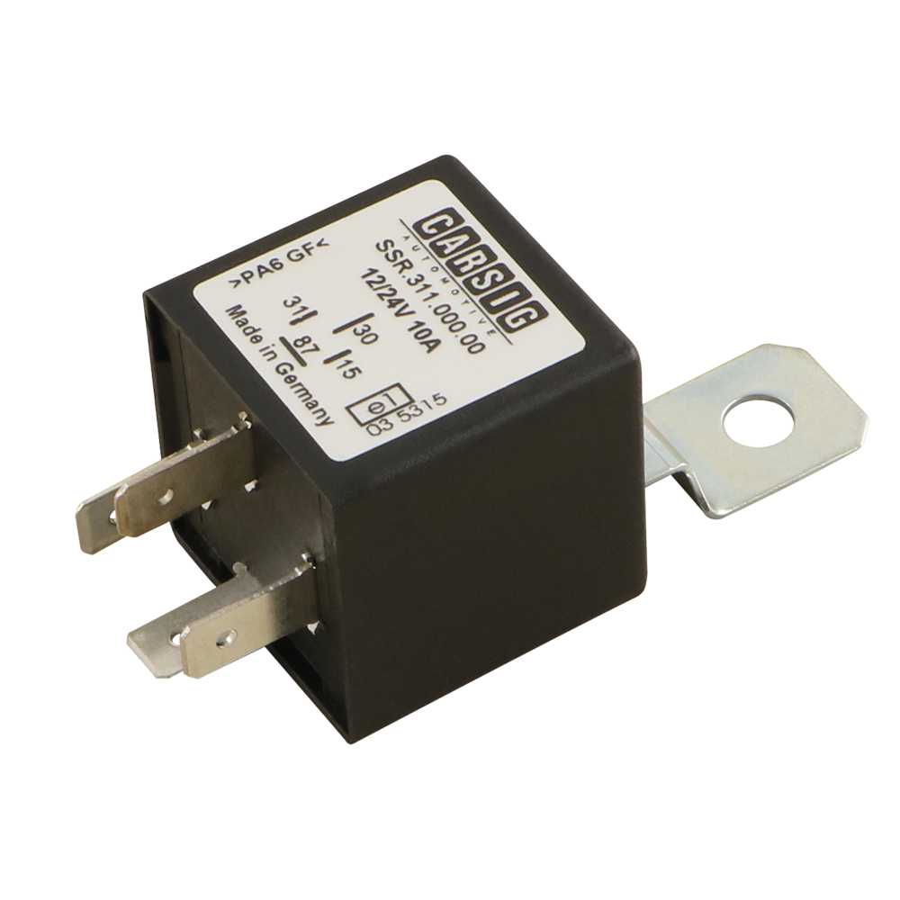 Zusatzinformation: Solid-State-Relais 12/24 V 10 A mit einem Halbleiterausgang, neg. angesteuert überlastsicher und kurzschlussgeschützt.