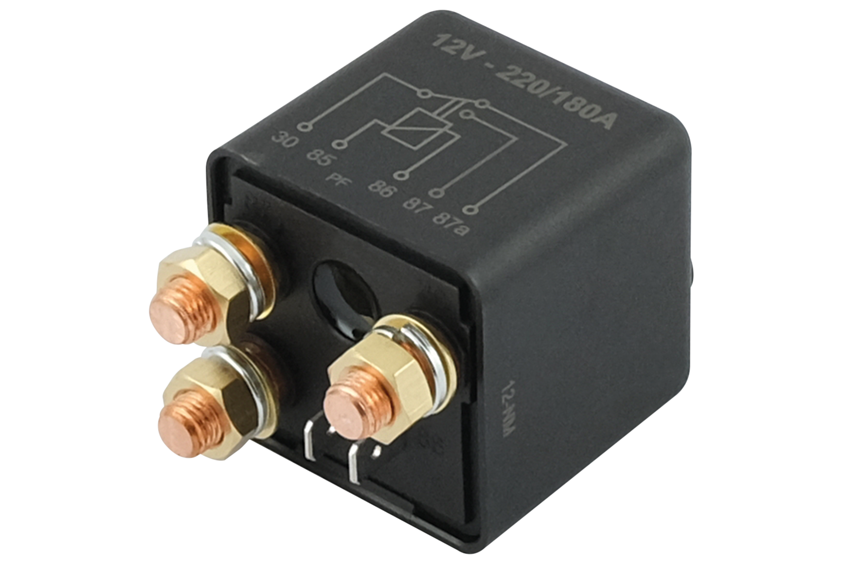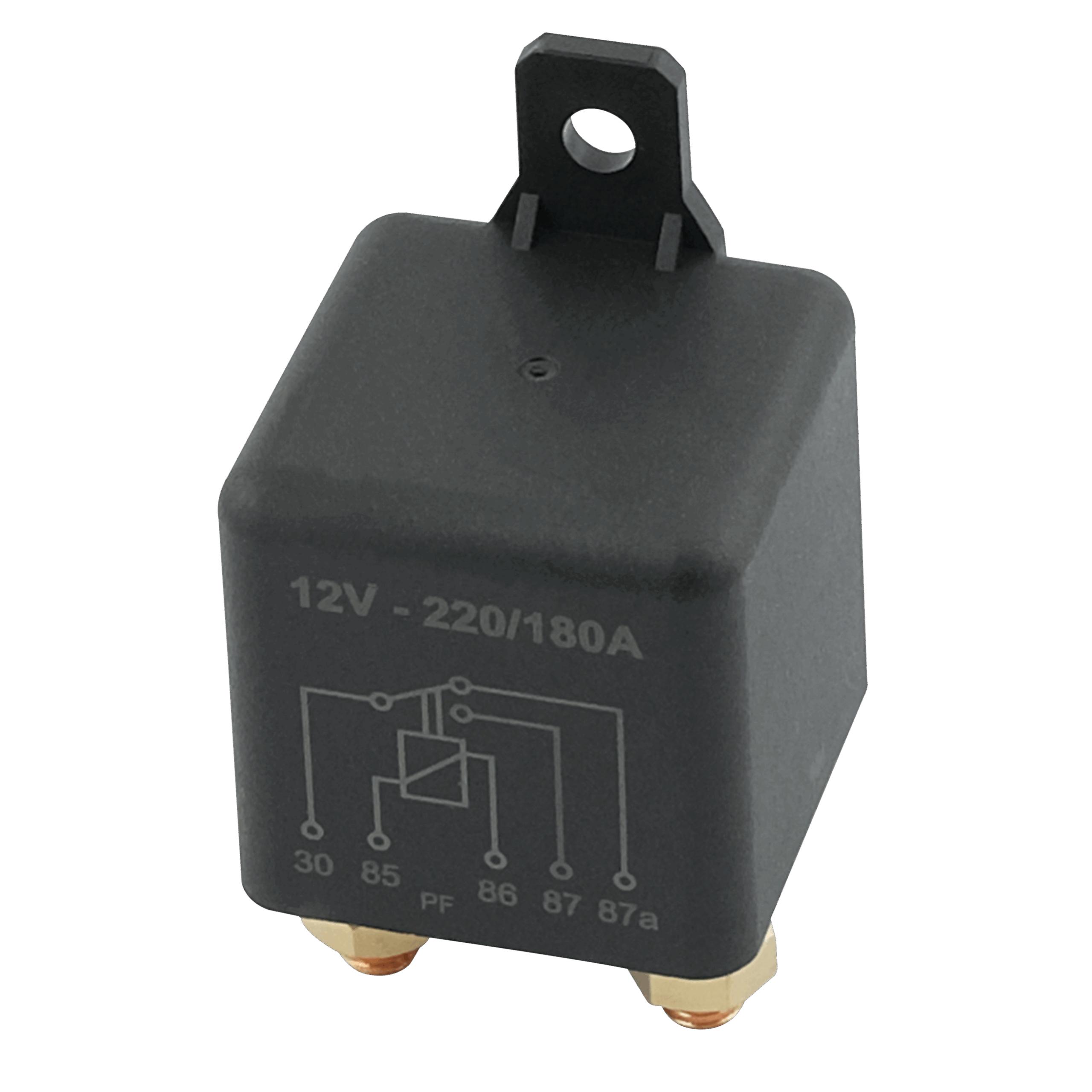 RelaisformHochleistungsrelaisSchaltfunktionWechsler / ÖffnerSpannung12 VLeistung Ruhekontakt180 AmpèreLeistung Arbeitskontakt220 AmpèreHalterJaParallelwiderstandNeinLöschdiodeNeinSicherungNeinAnschluss 30 seitlichNeinDauerstromJaWasserdichtNeinZusatzinformation- Dauerstrom: Max. 140/110 A
