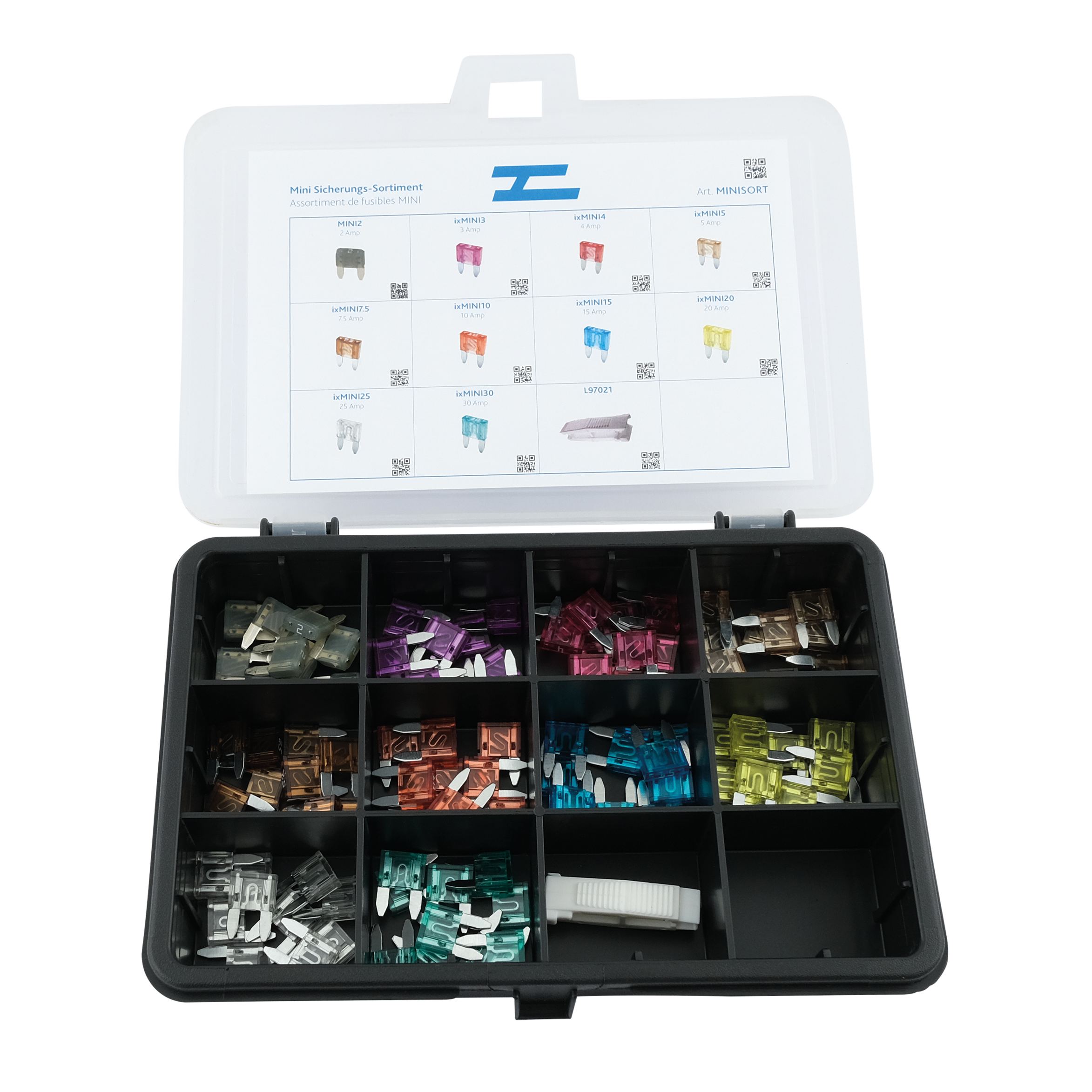 Inhalt: - je 10 x 2 A, 3 A, 4 A, 5 A, 7.5 A, 10 A, 15 A, 20...