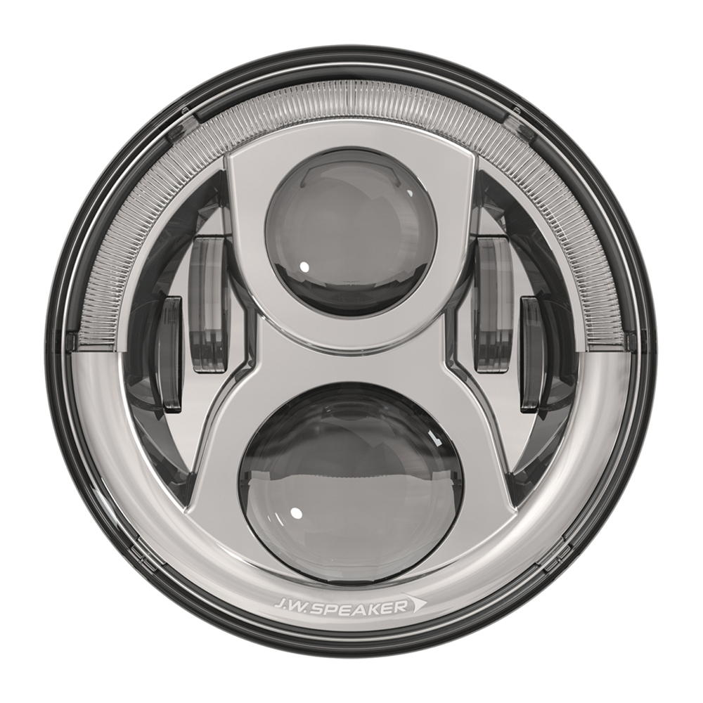 7“ LED-Hauptscheinwerfer mit Positions-, Abblend- & Fernlicht, sowie Tagfahrlicht (DRL) von JW Speaker (Made in USA). Alle Funktionen e-geprüft; Upgrade für alle 7“ H4-Scheinwerfer (VW Typ3, Land Rover, Harley Davidson, etc.).