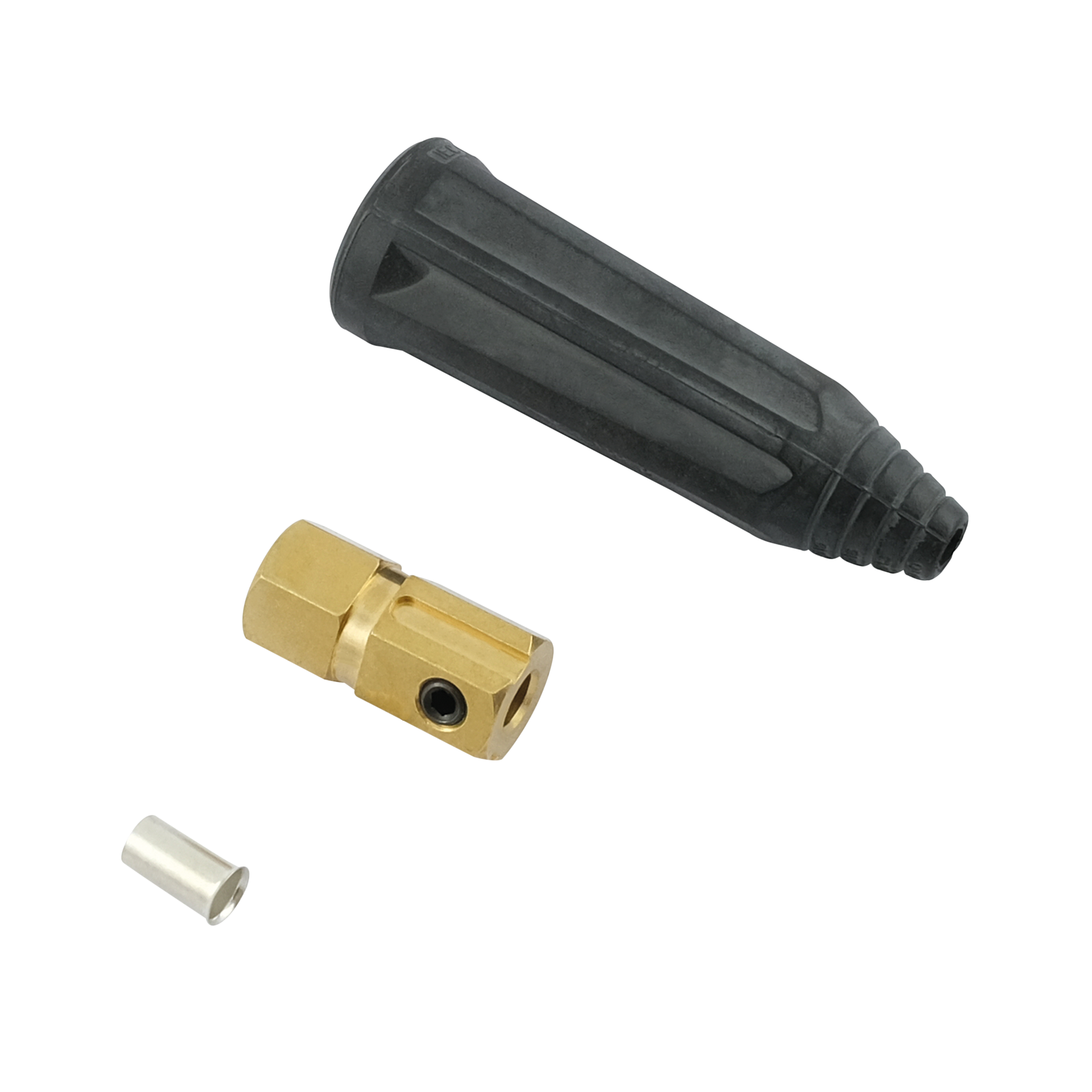 „Stecker“Kupplungen für Kabel aller Art, erprobt aus der Schweisstechnik. Sicheres und schnelles Verbinden mit Bajonettverschluss. Stromführender Teil aus einer speziellen Kupferlegierung,vollisoliert. Gummimuffen aus verschleissfestem und hitzebeständigem Neoprene, dauerhaft und robust, widerstandsfähig gegen Oele, Säuren und Alkalien.