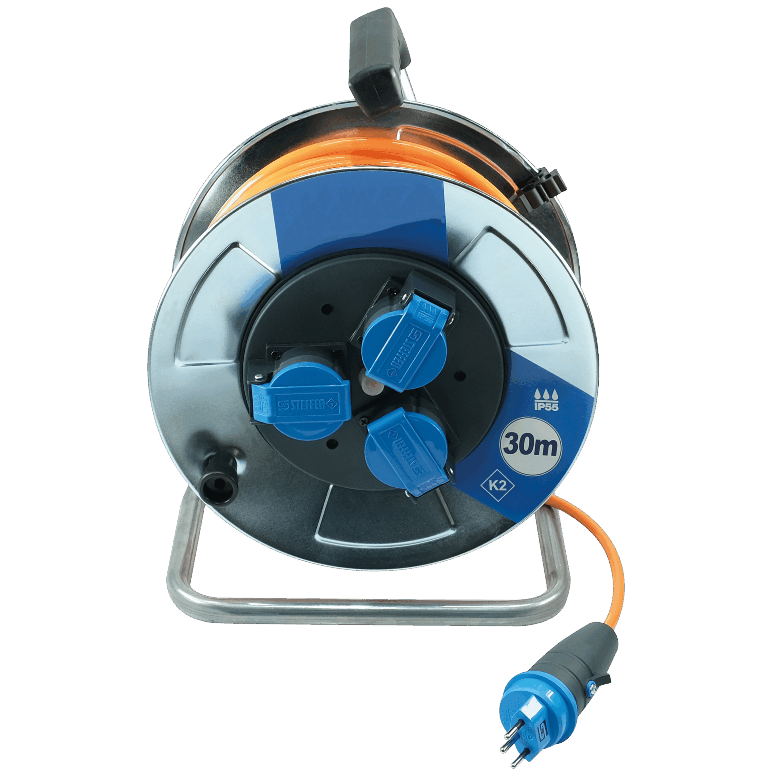 Kabelrolle Metall PUR 3 x 1.5 / 30 m, 3 Steckdosen, IP55