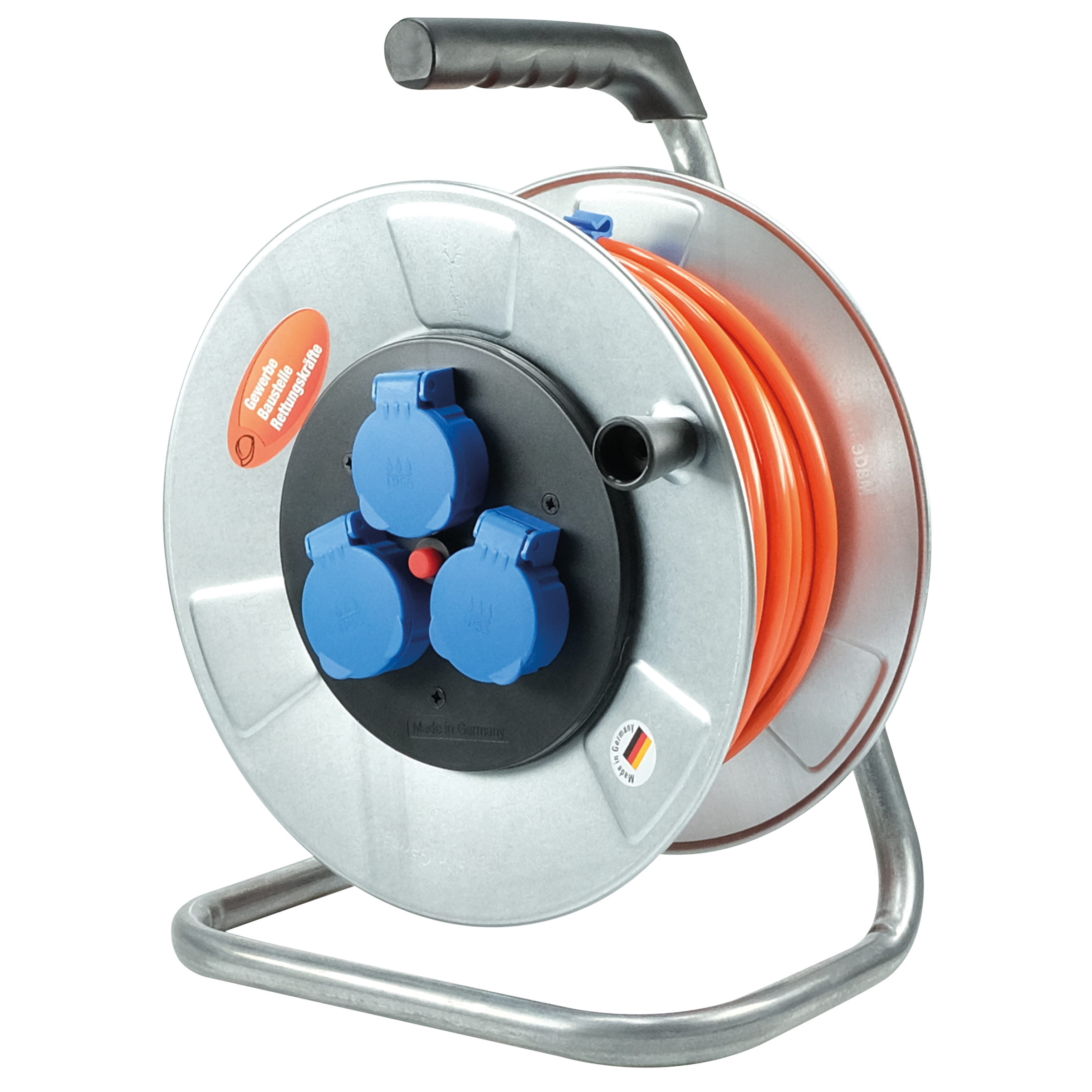 Kabelrolle Metall PUR 3 x 1.5 / 33 m, 3 Steckdosen IP55