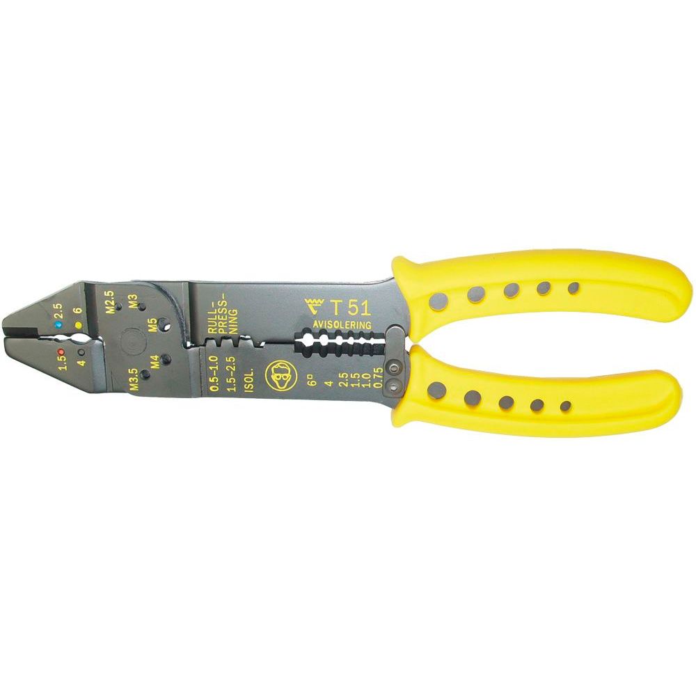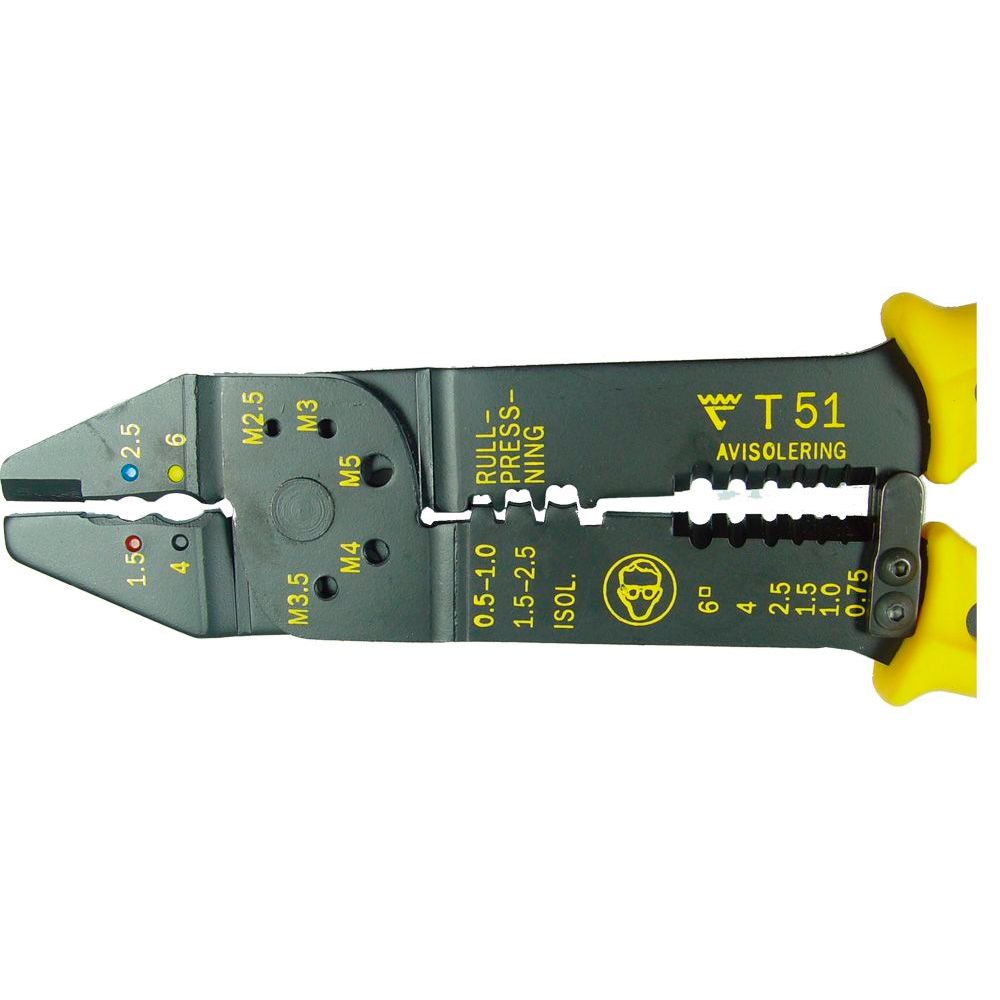 Kabelschuhzange, für isolierte Verbinder 0.5 bis 6.0 mm2. Einrollpressung unisolierte Verbinder 0.5 - 2.5 mm2