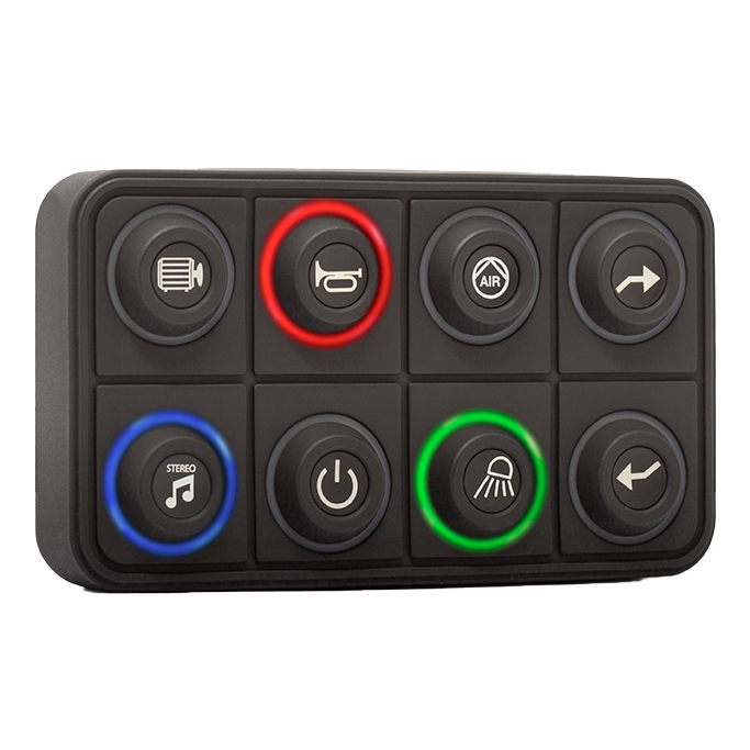 Symboleinsätze können selber zusammengestellt und ausgetauscht werden. Dank der Kommunikation über CAN-Bus (J1939 und CANopen umschaltbar), kann das Keypad so Beispielsweise einfach in eine MRS Steuerung integriert werden, dies mit minimalem Verkabelungsaufwand und maximaler Flexibilität.
