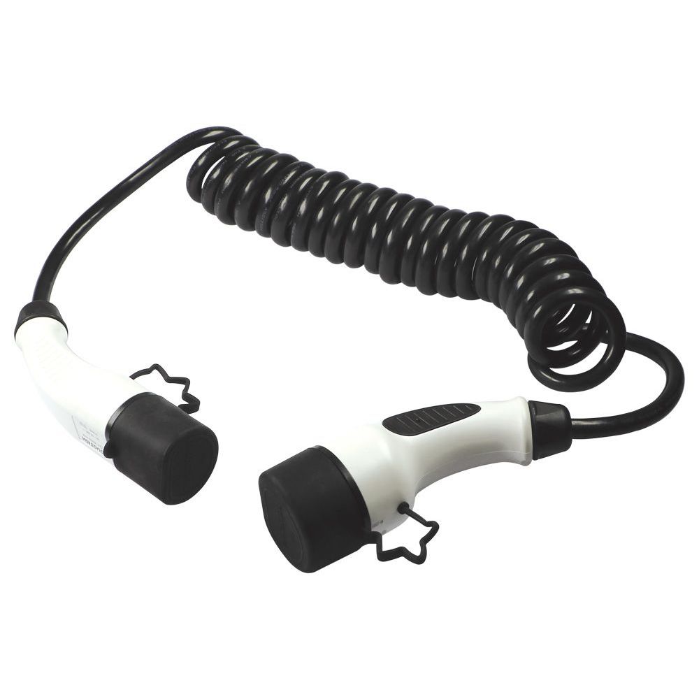 Mode 3 Spiral-Ladekabel für Elektro-Fahrzeuge mit Typ 2 Steckdose. Sehr robustes, flammwidriges Spiral-Kabel mit Typ 2-Stecker und -Kupplung (Stecker und...