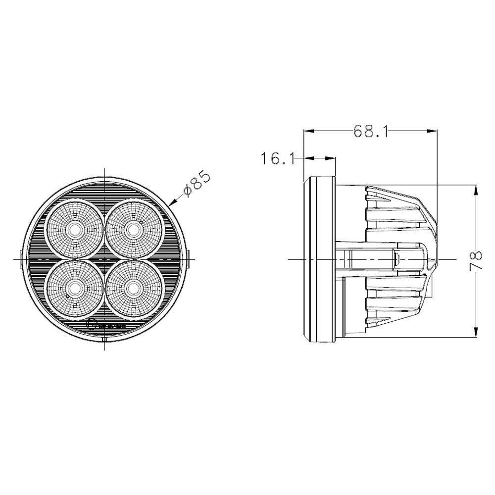 Spannung12–24 VoltLEDJaLichtverteilungBreitstrahlerLichtstrom3200 LumenIP-Grad68FormrundBreite / Tiefe69 mmDurchmesser85 mmLeistung (W)40 WattEMV: CISPR25-Klasse4EMV: ECE-R10JaLichtfarbe5700 KelvinZusatzinformationDer hochwertige LED-Arbeitsscheinwerfer von H-TEC kann als Ersatz für...