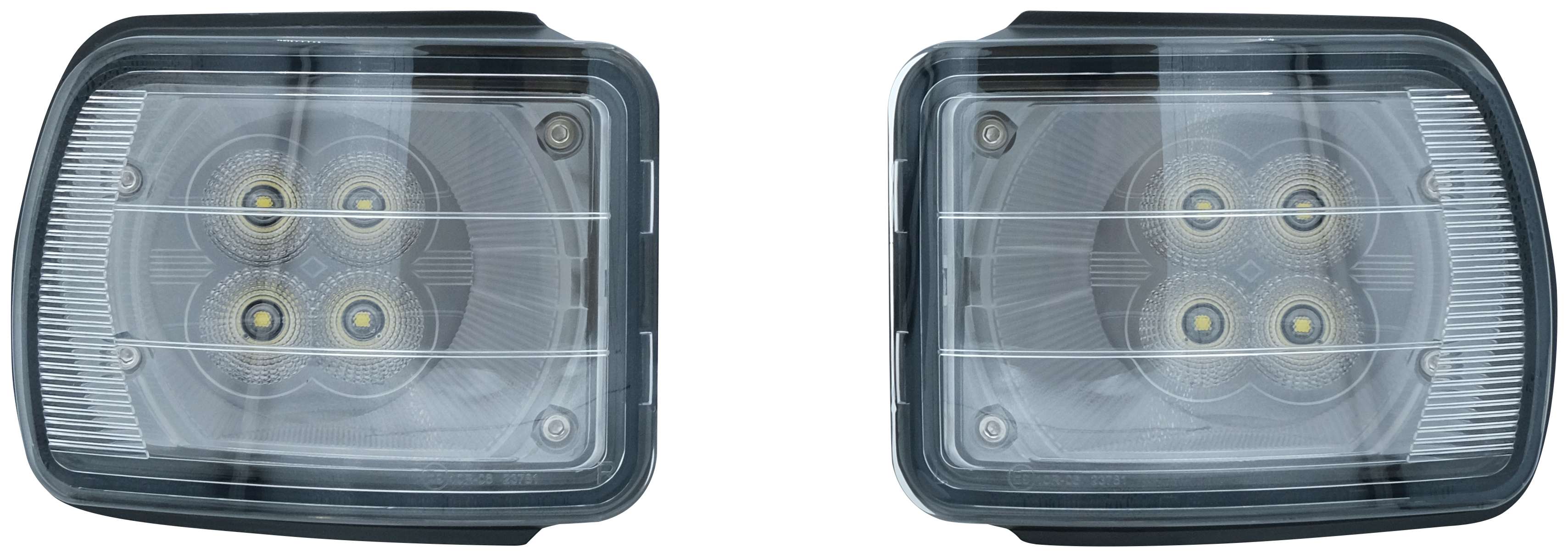 Zusatzinformation: Das LED Arbeitsscheinwerfer-Set von HTec kann als Ersatz für die Halogenversion in der Traktorenhaube von John Deere Modellen der Serie 6000 & 6010 Plug & Play eingebaut werden. So wird der Bereich seitlich und vor dem Traktor erheblich besser ausgeleuchtet.