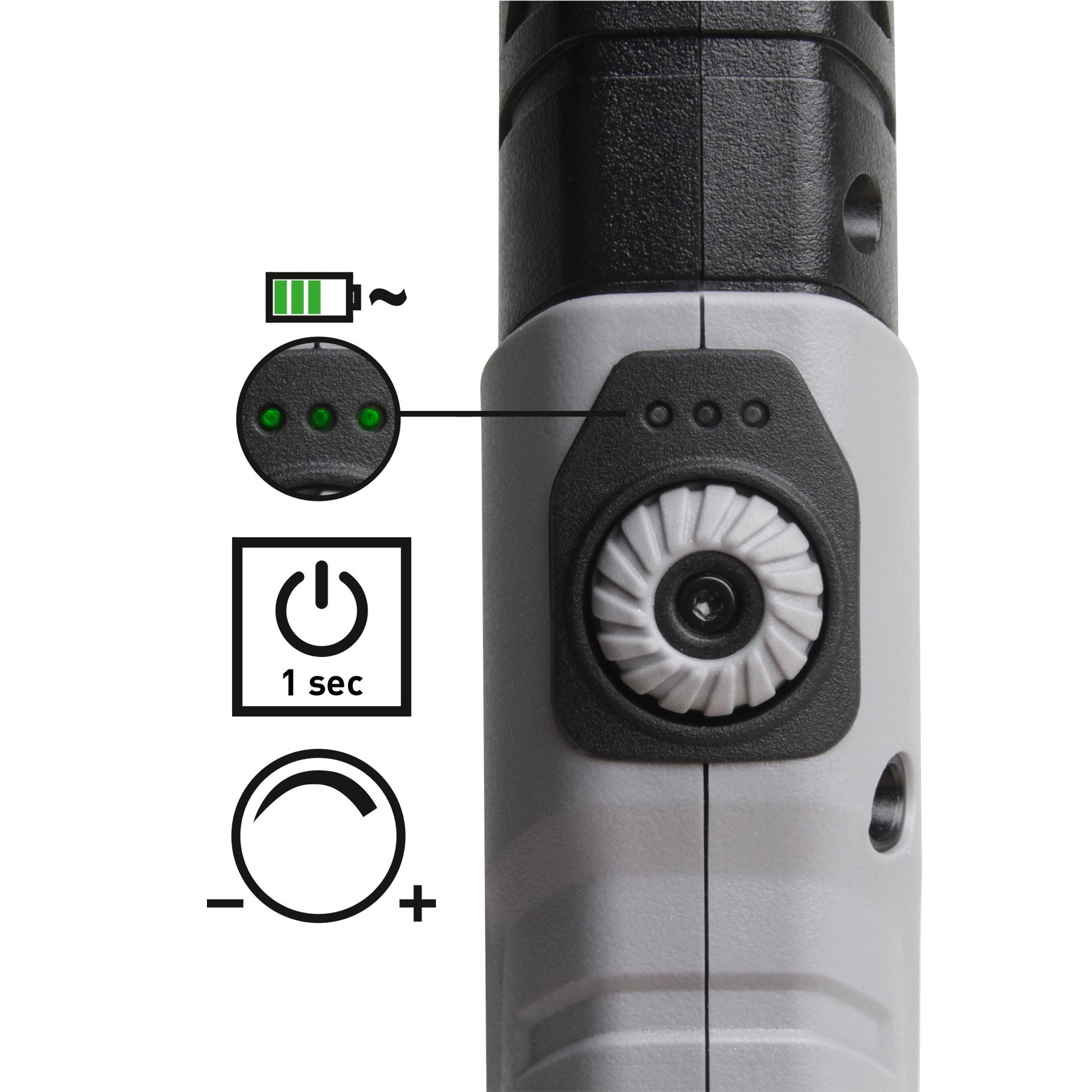 Diese leistungsstarke und dimmbare Handlampe mit 700 Lumen bietet durch die flexible um 180° faltbare und 180° schwenkbare Lichtrichtung für jede Situation die richtige Beleuchtung. Mit einem starkem Magnet und einem klappbarem Haken lässt sich der Anwendungsbereich individuell anpassen.