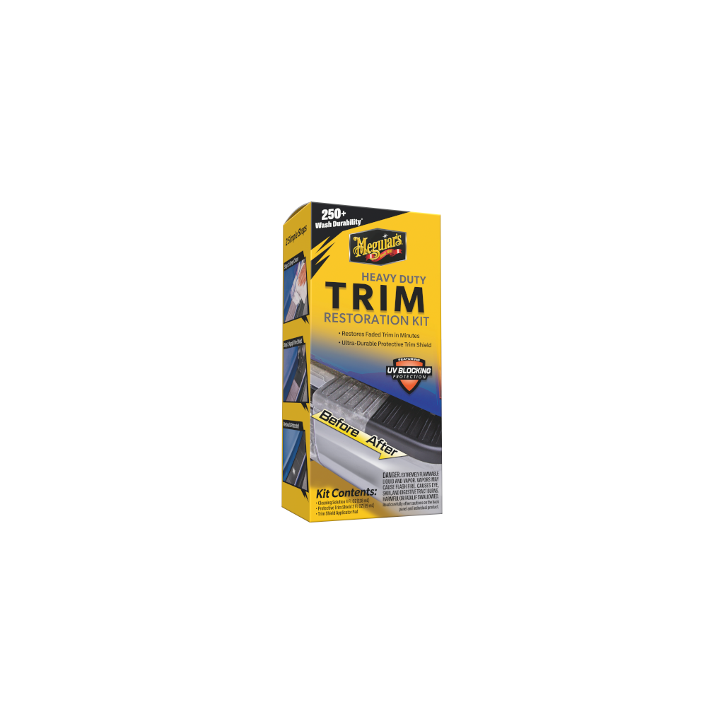 Im Laufe der Zeit und durch die Einwirkung von Sonne und Witterungseinflüssen kann die äußere Kunststoffverkleidung verblassen und ihren Glanz verlieren. Meguiar’s® bietet hier als Lösung das Heavy Duty Trim Restoration Kit an. Dieses dreiteilige Set umfasst eine Reinigungslösung, einen Schutzversiegelung für die Verkleidung und ein Applikatorpad für die Versiegelung. Mit diesem Autopflegeset kann ist es Jedem möglich, verblasste Kunststoffverkleidungen aufzufrischen und einen langlebigen Schutz aufzubringen, der der Fahrzeugverkleidung in zwei einfachen Schritten eine satte Tiefe und Glanz verleiht. Der erste Schritt verwendet die enthaltene Reinigungslösung, um eingebettete Verunreinigungen und Oxidation zu entfernen und schwarze und graue Verkleidungen gründlich zu reinigen, um die Haftung und Haltbarkeit der Schutzversiegelung zu maximieren. Die Versiegelung für die Verkleidung stellt dann das Erscheinungsbild der Kunststoffteile wieder her und hinterlässt einen ultra-langlebigen Schutz. Sie bietet UV-Schutz und hält über 250 Wäschen stand*. Ein Auftrags Applikator ist in diesem Autopflegeset enthalten, um eine gleichmäßige Anwendung für die beste Leistung des Versiegelungsmittels zu gewährleisten.