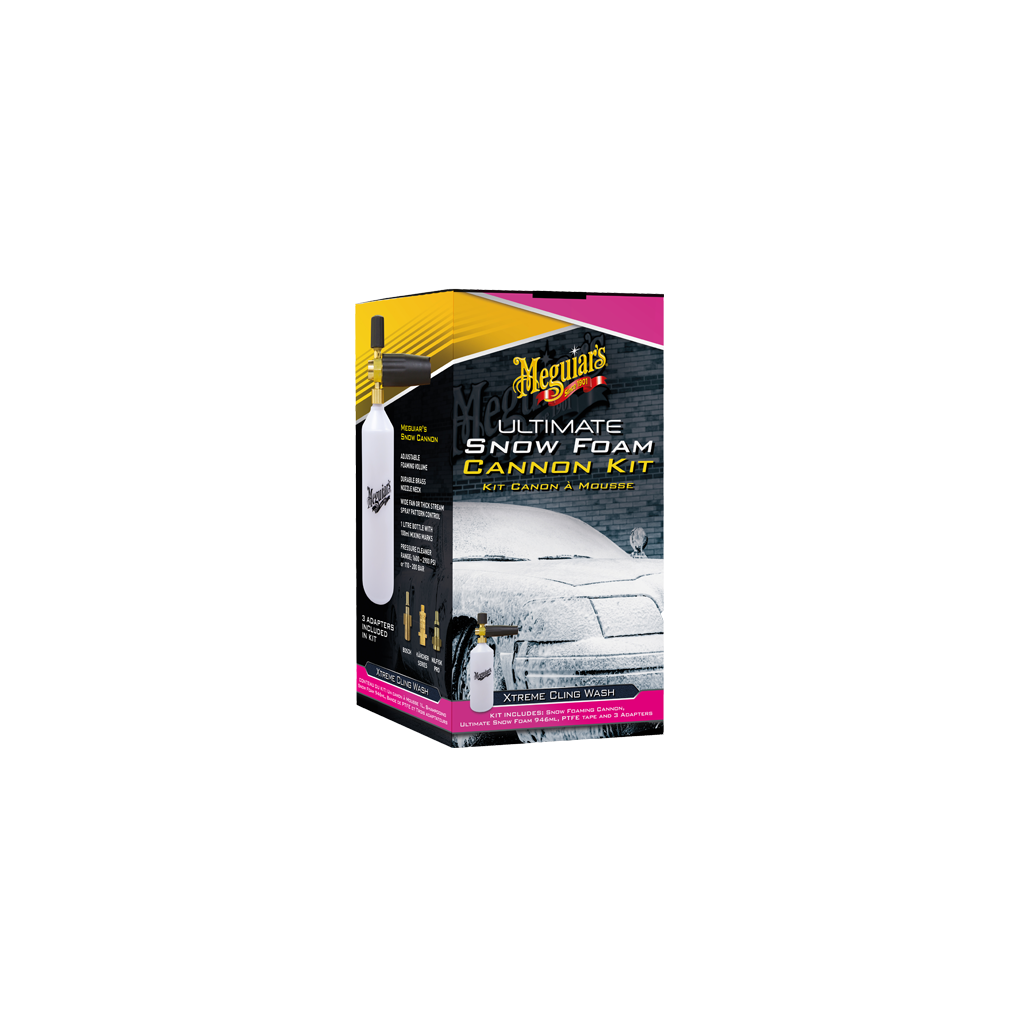 Meguiar‘s Ultimate Snow Foam Cannon Kit enthält sowohl die Snow Foam Cannon als auch den wachsschützenden Xtreme Cling Ultimate Snow Foam. Diese Kombination sorgt mit einem geeigneten Hochdruckreiniger für eine hervorragende Schaumbildung und Haftung auf der Oberfläche, um Straßenschmutz und andere Verunreinigungen sanft zu entfernen. Stellen Sie den Glanz und die Farbintensität Ihres Lackes mit diesem Snow Foam Cannon Kit wieder her - alles, ohne den Wachsschutz zu entfernen! Meguiar‘s Ultimate Snow Foam wurde speziell für beschichtete, gewachste oder versiegelte Oberflächen entwickelt und reinigt, ohne die Versiegelung abzutragen. Kit: Einstellbare Schaumdüse inkl. 1-Liter-Vorratsflasche, 3x Hochdruckreinigeradapter (Kärcher, Nilfisk, Bosch), Meguiar‘s Ultimate Snow Foam 946ml